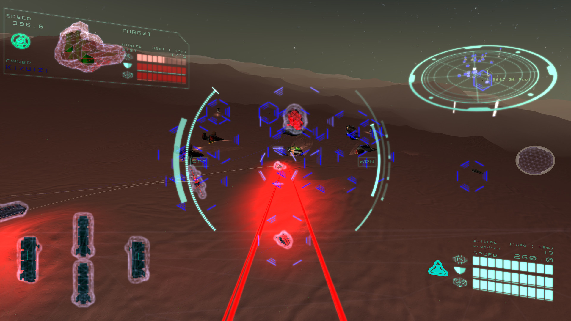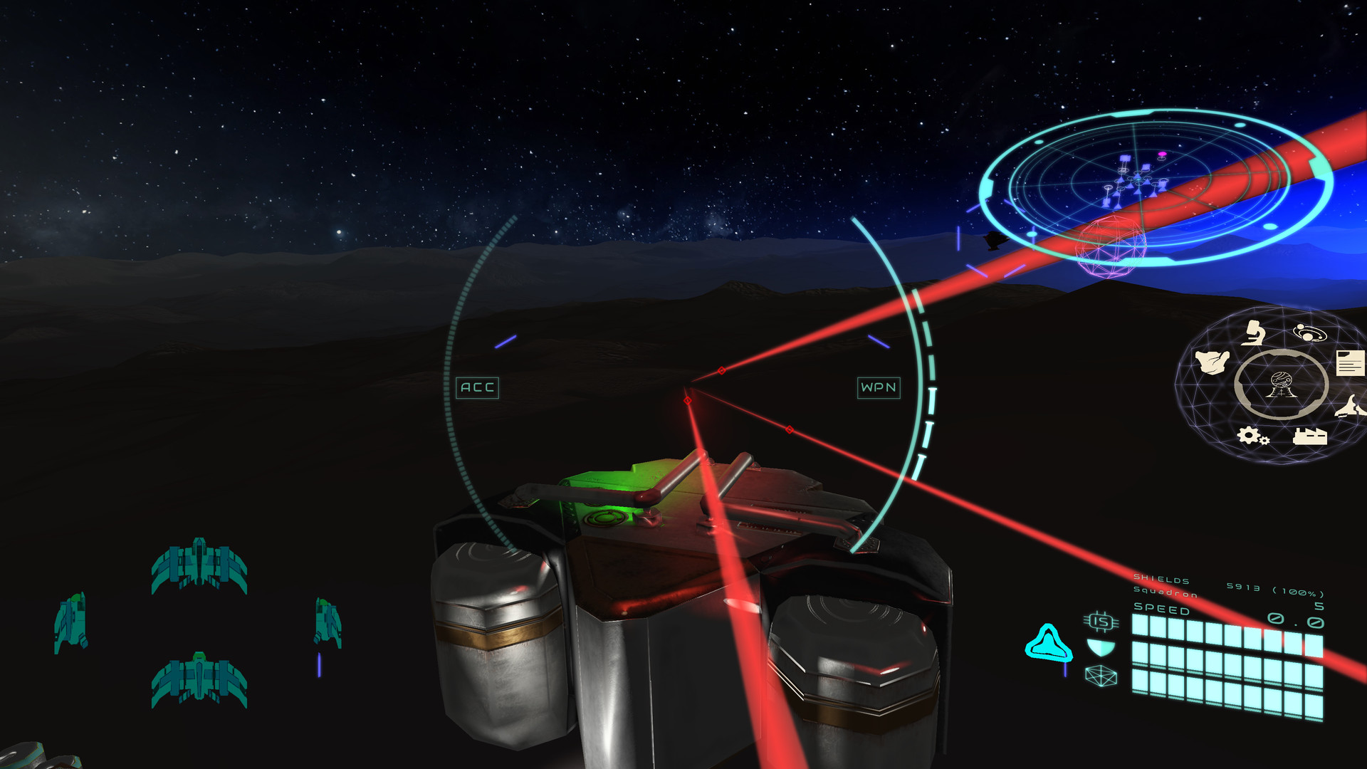 Order your fleets into engagements with enemy forces or freely take first-person control of any of your ships. When the ship you control is destroyed, instantly jump into any other ship you control.