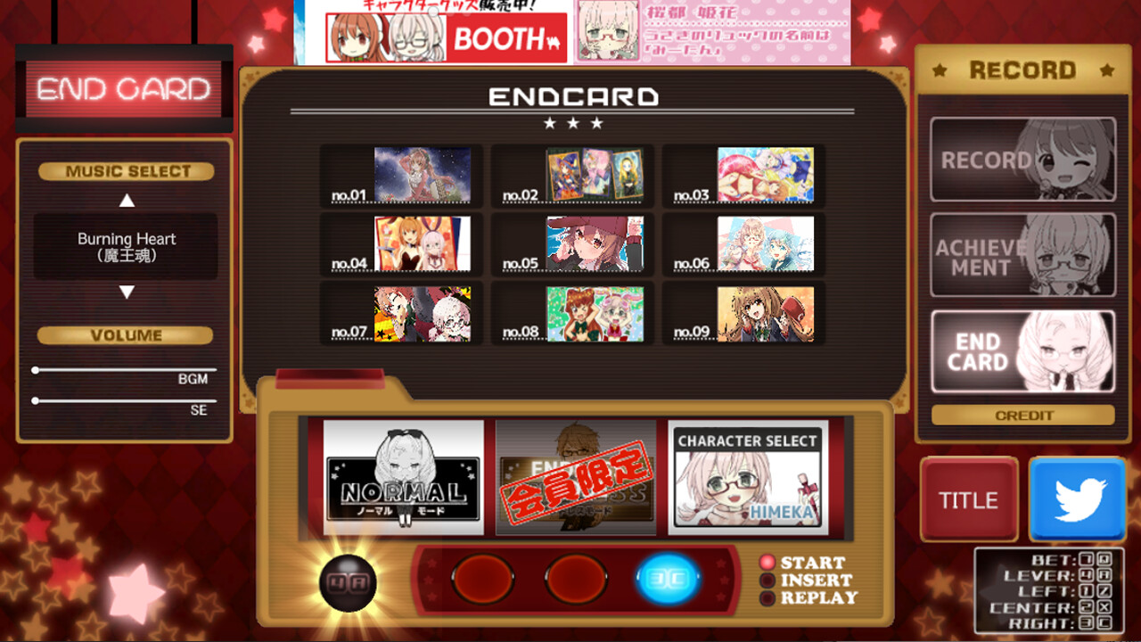 This is an original slot-style mini-game set in the future where you've hit the ultra-high-speed, high-purity increase, endless ART just one minute before closing! Try to collect as much as possible before time runs out!