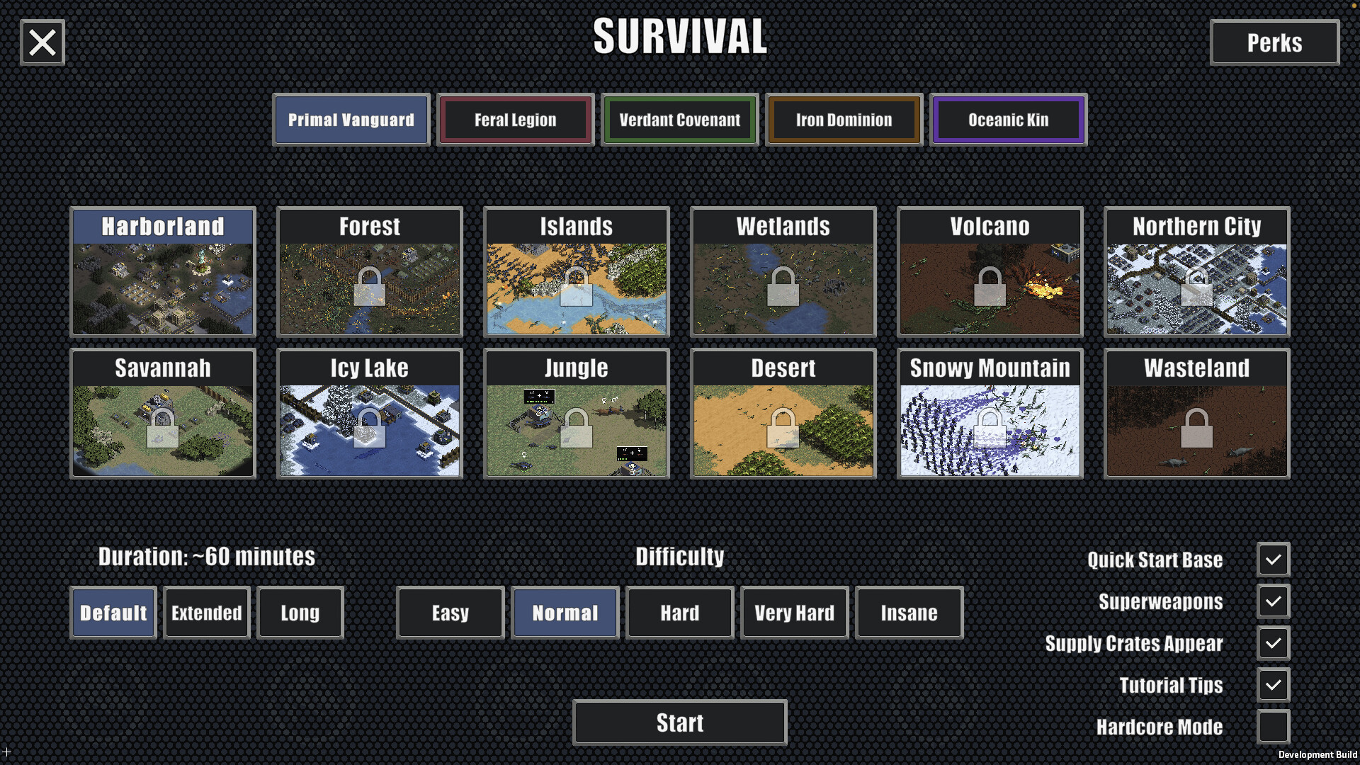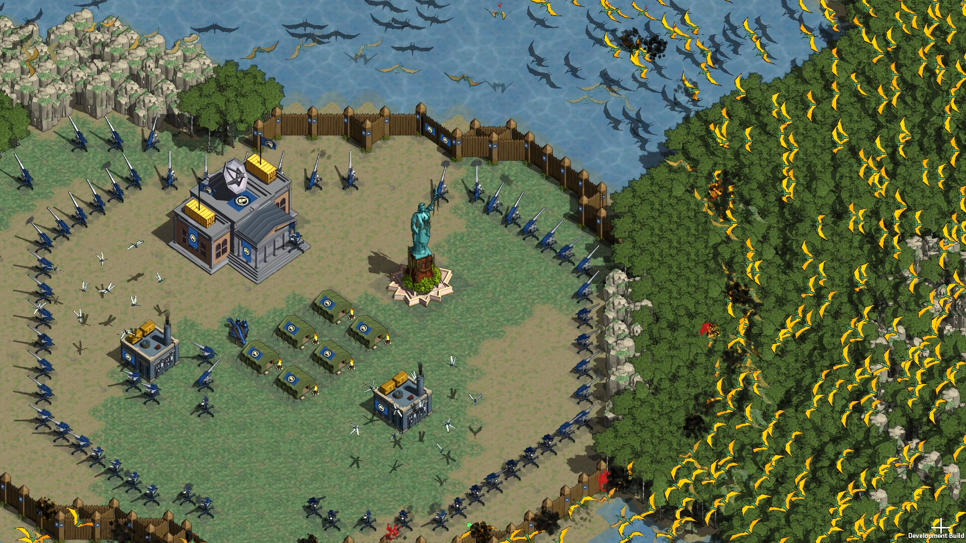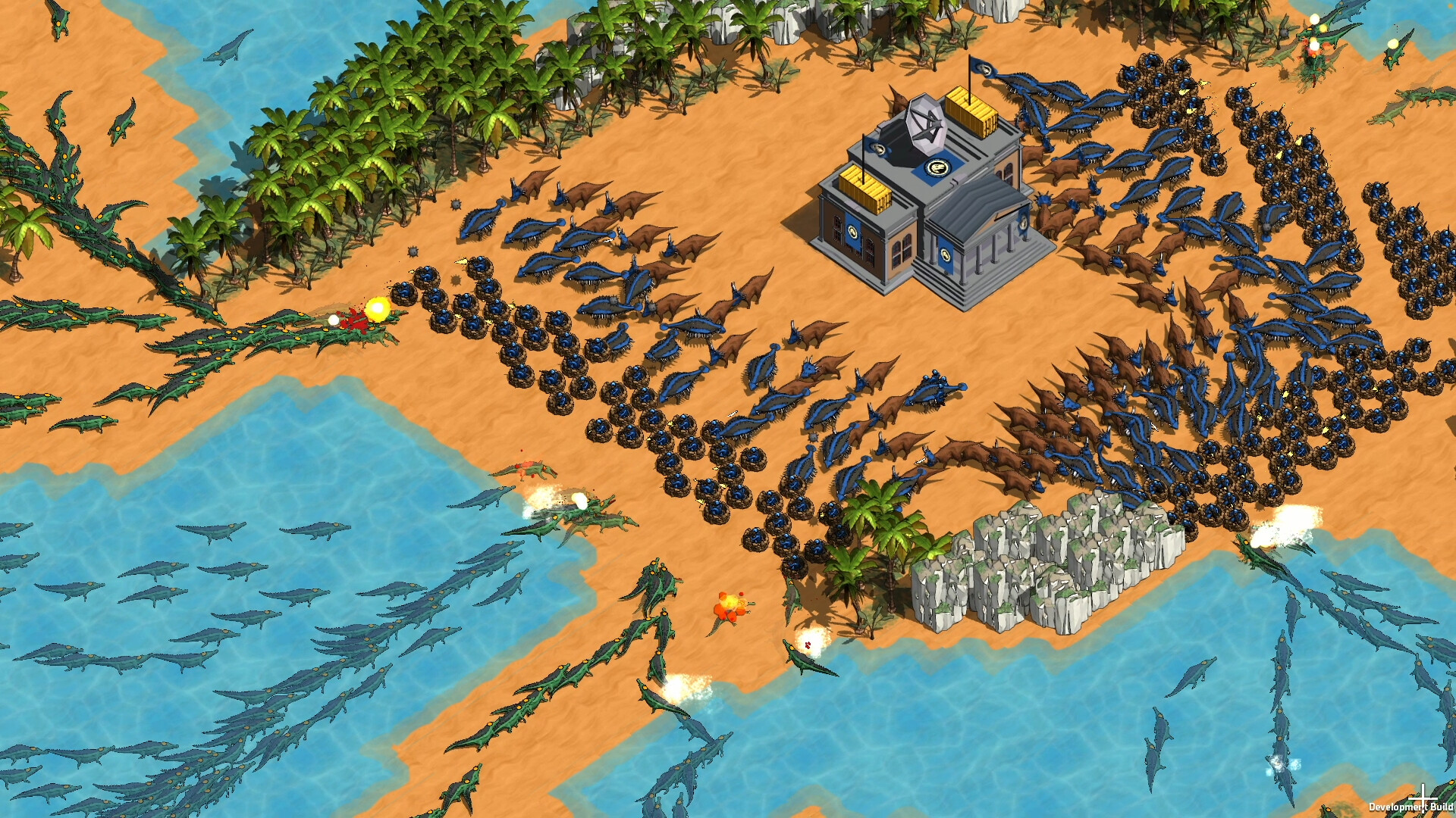 3 factions, each with unique units, perks, and heroes. Every faction emphasizes a different play style, from resource management and mobility to technology, dinosaur taming, or raw combat power. Choose the one that fits your strategy and conquer accordingly.