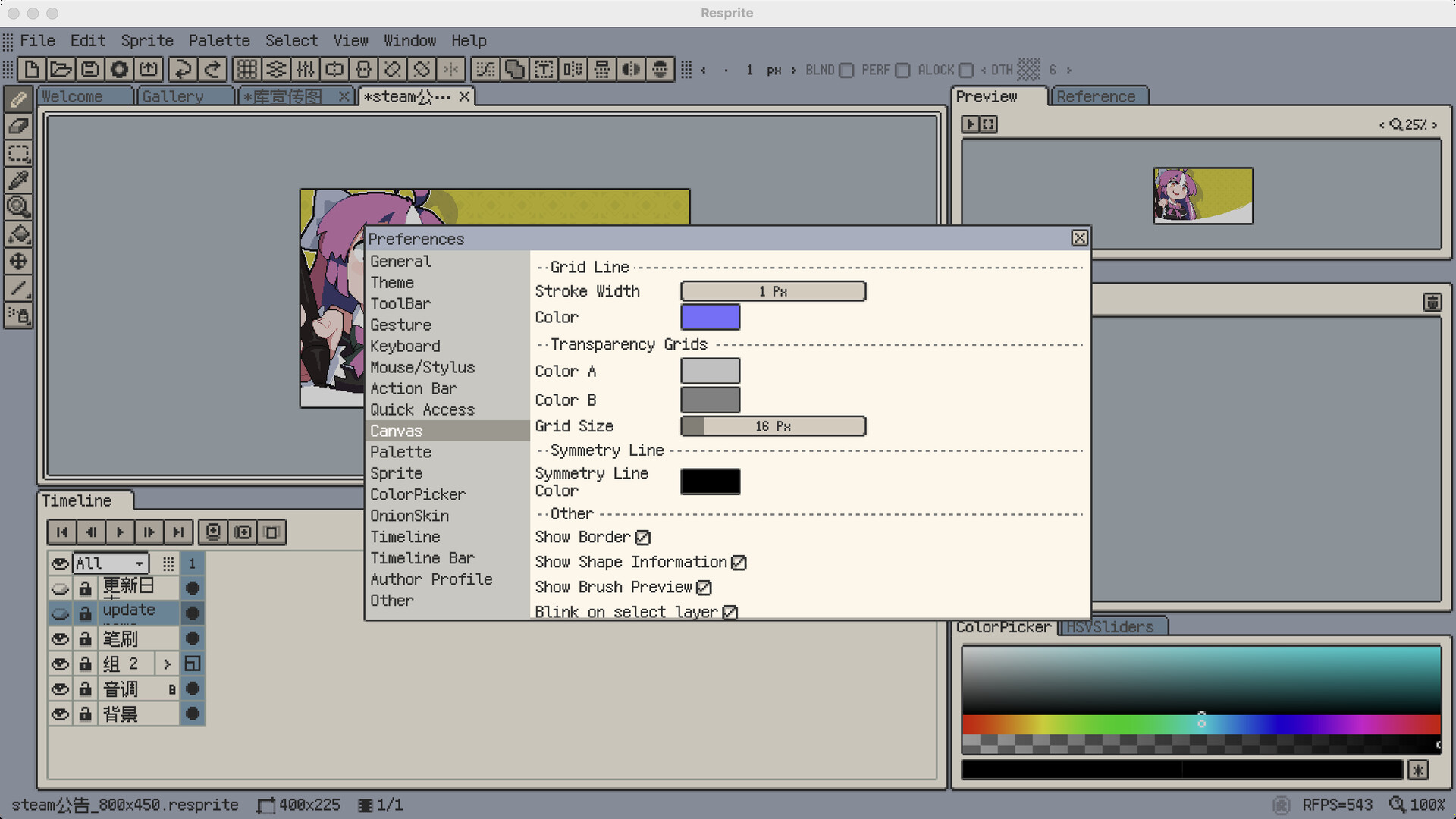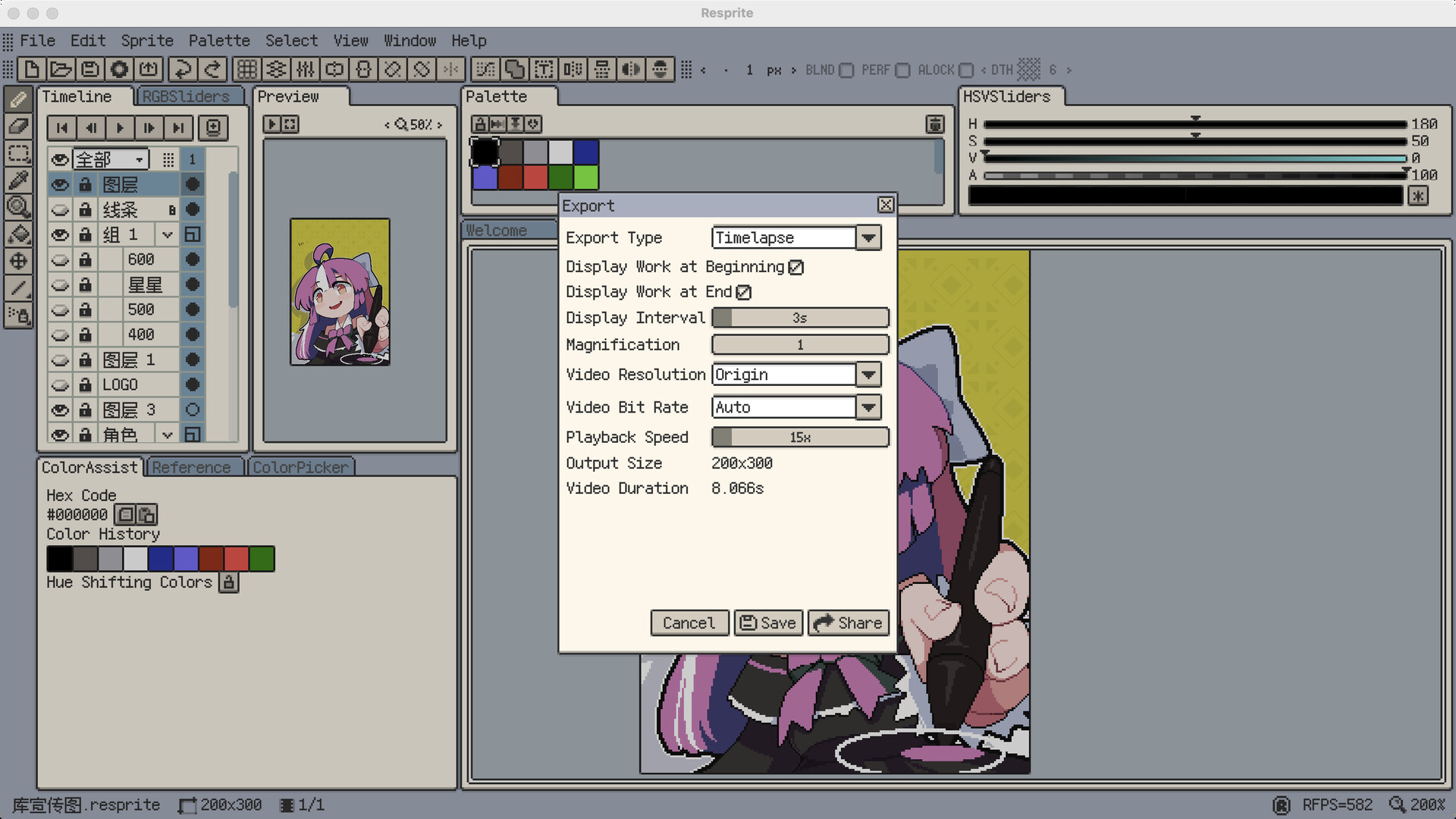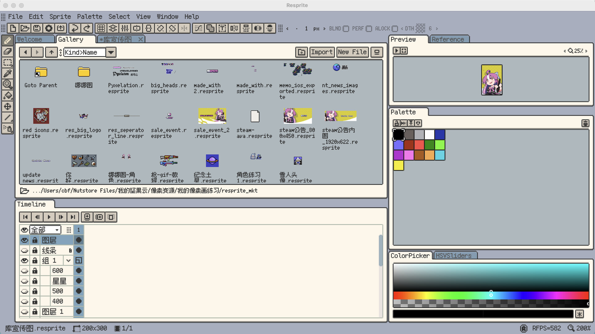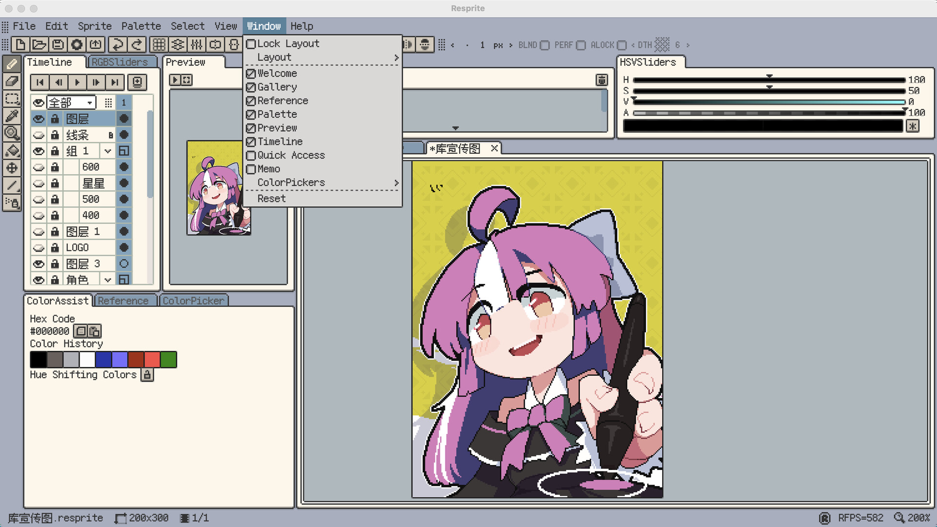 Resprite is a pixel art editor. You can use it to create game assets and animations. If you have used image editing software such as GIMP, PhotoShop, iDraw3, Aseprite, Pixelorama, etc., you can easily get started. In addition to the regular editing functions, Resprite has the following features: