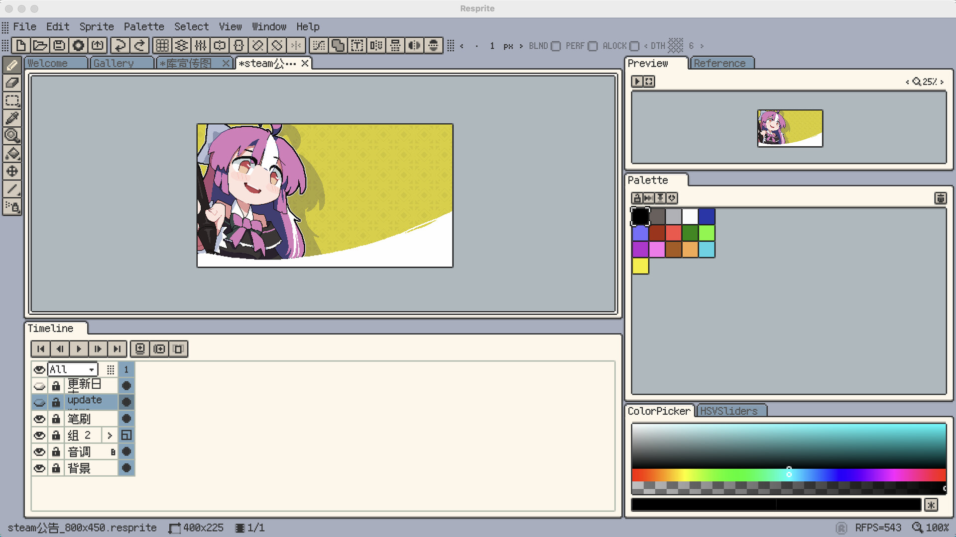 Resprite is a pixel art editor. You can use it to create pixel art, sprite animations, and art assets for pixel games. It supports new features such as flexible interface layout, clipping masks and timelapse.