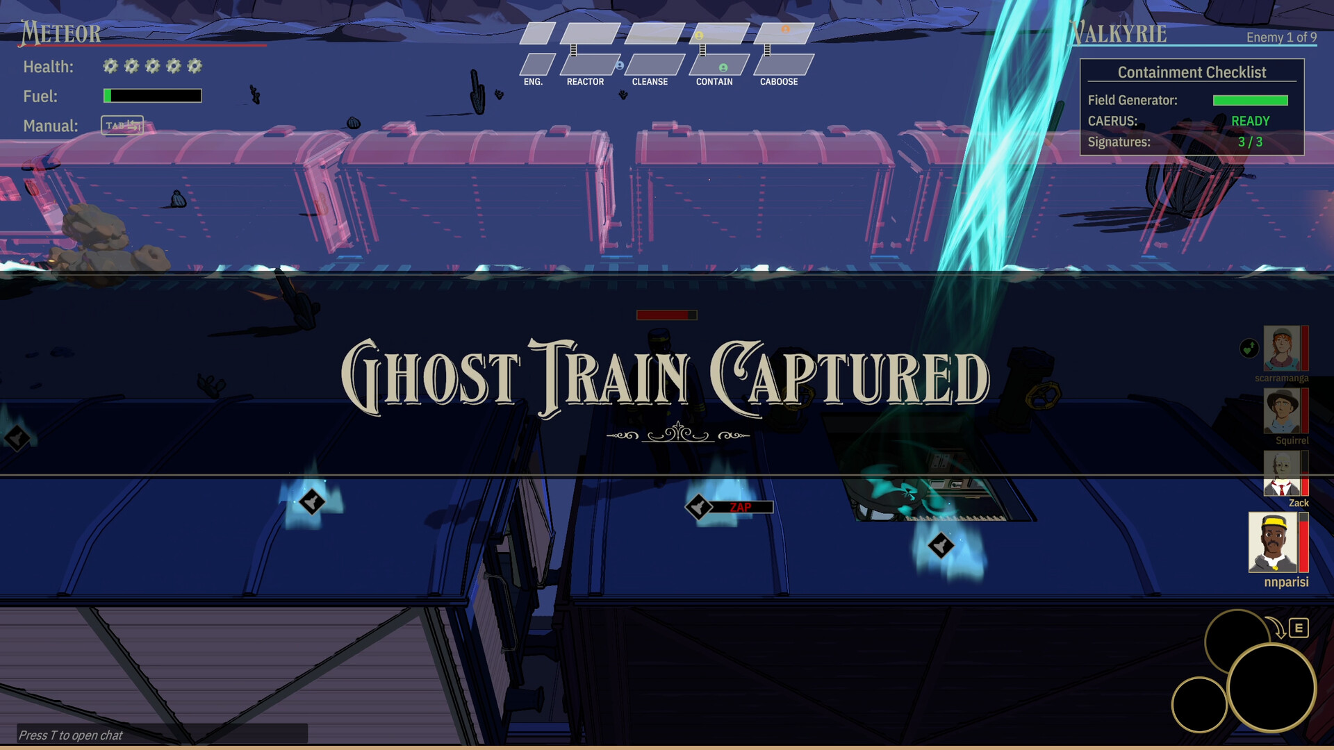 Rhyolite throws your crew of up to 4 players into a pressure cooker of broken train mechanisms, complex enemy attacks, and an ever-shifting puzzle of resource and attention management as you capture ghosts on a haunted steampunk railway.