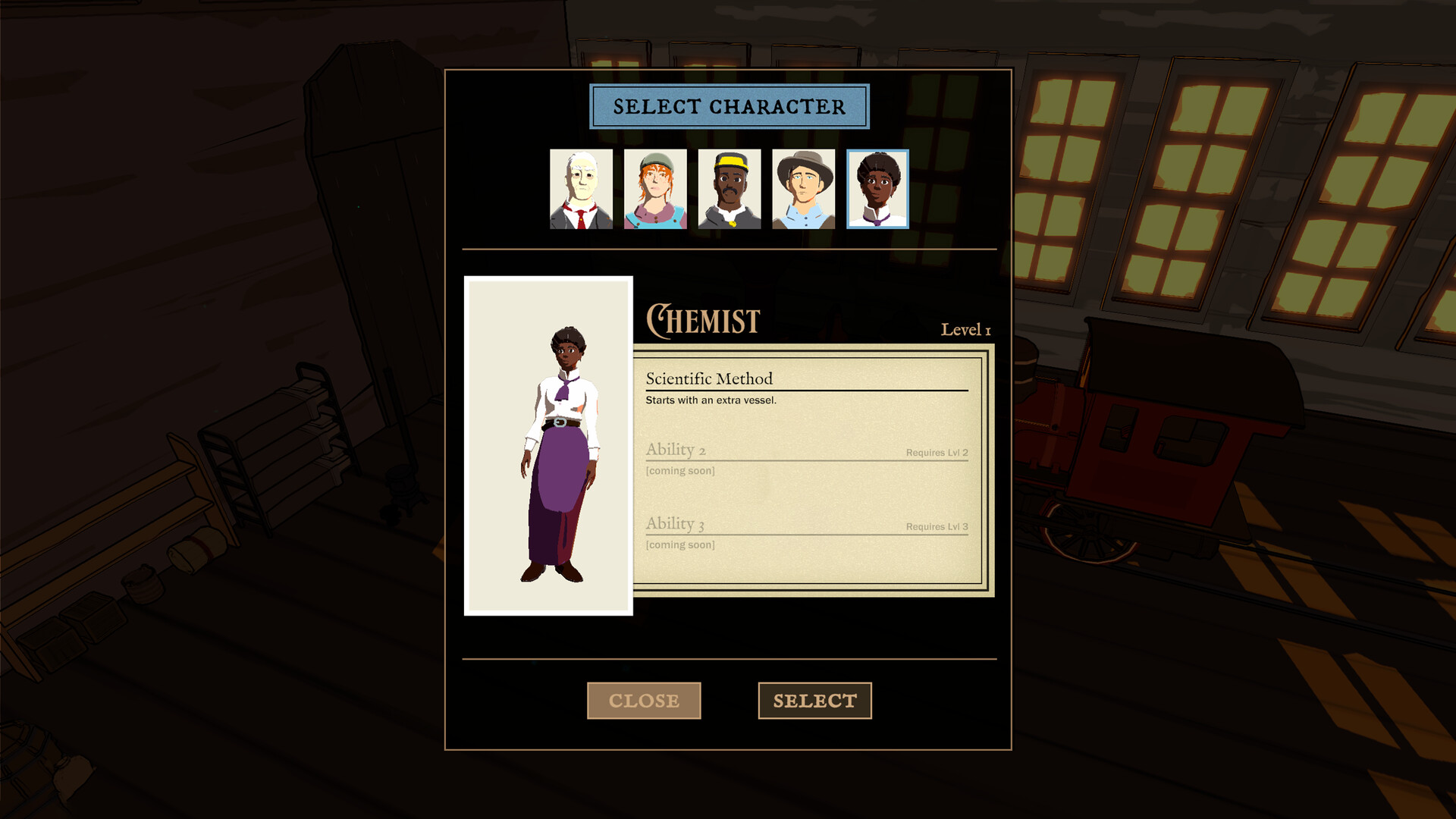 It takes a lot to keep a steam engine running. Choose your role — Engineer, Brakeman, Mechanic, Chemist, or Benefactor — and use your special skills to help your team stay on track.
