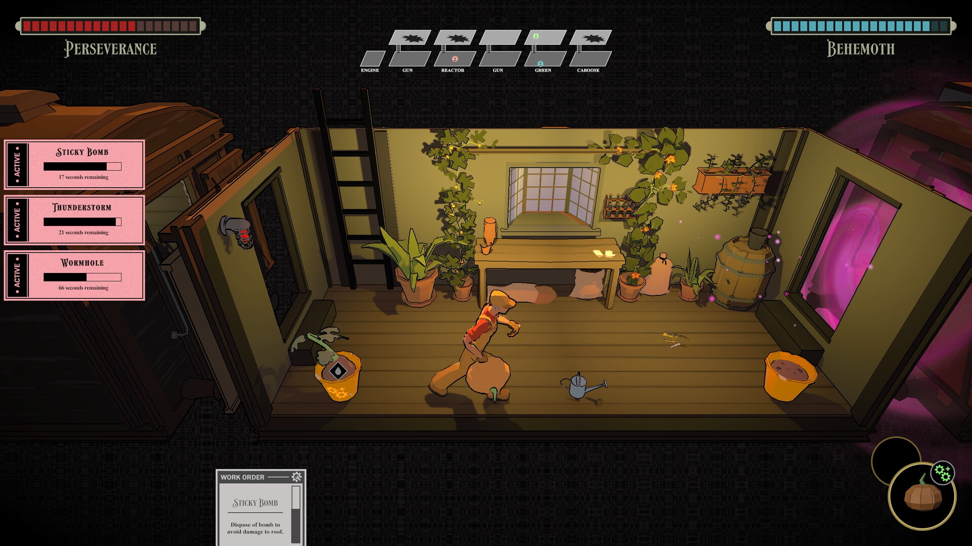 Your engine has seen better days, and these attacks from ghost mortars aren't helping. Repair broken systems, divert steam pressure, and prevent reactor meltdowns to keep your train chugging along — and do it fast, because these malfunctions escalate quickly. (We recommend welding that hole in the roof before the whole thing collapses.)
