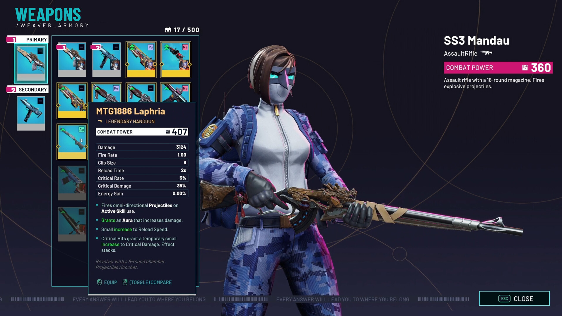 Collect an arsenal of weapons imbued with the supernatural technologies of secret societies. Find or build the perfect weapons for your Weavers and adapt their playstyles to any mythic challenge you may face in the field.