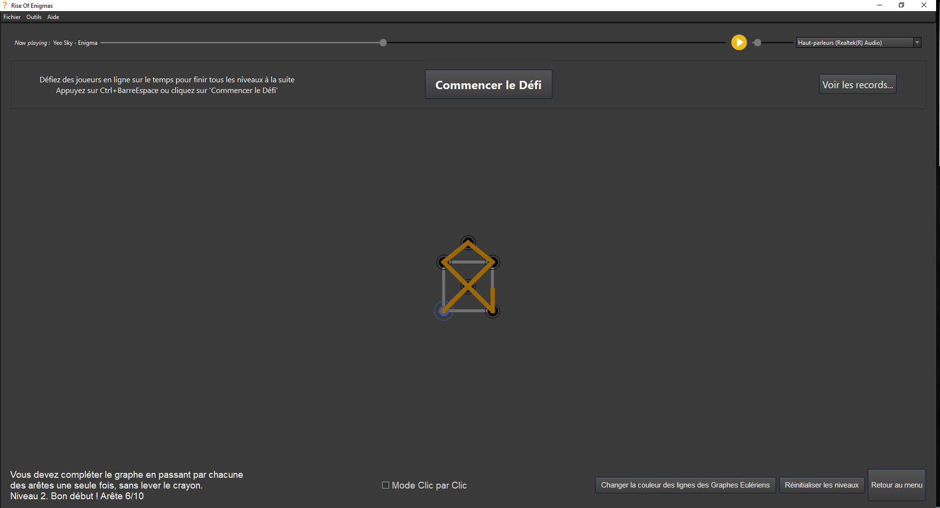 One series of puzzle is included for the moment : you will have the pleasure to try to complete some Eulerian Graphs (by passing through each of the edges only once, without lifting pencil).