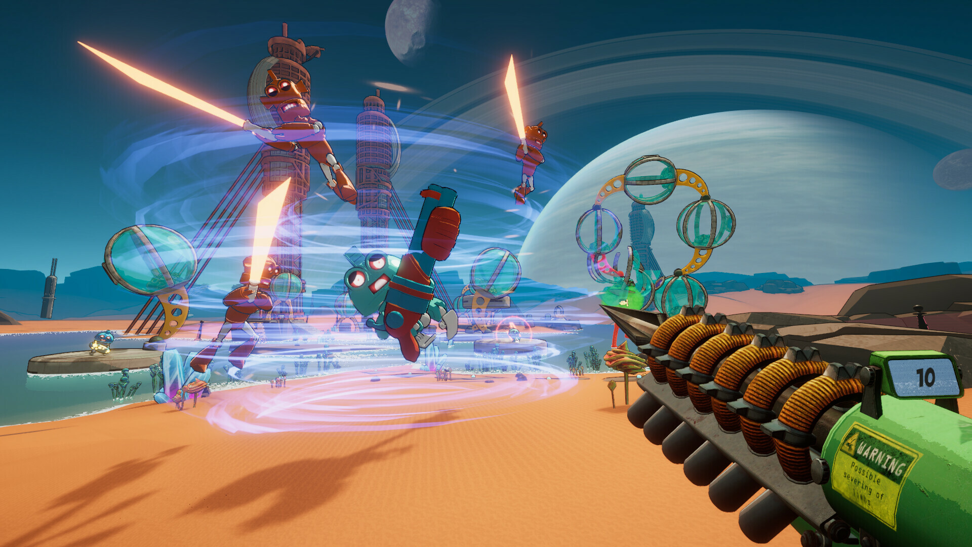 Brew, blast, and upgrade your way through a retro-futuristic world gone mad!