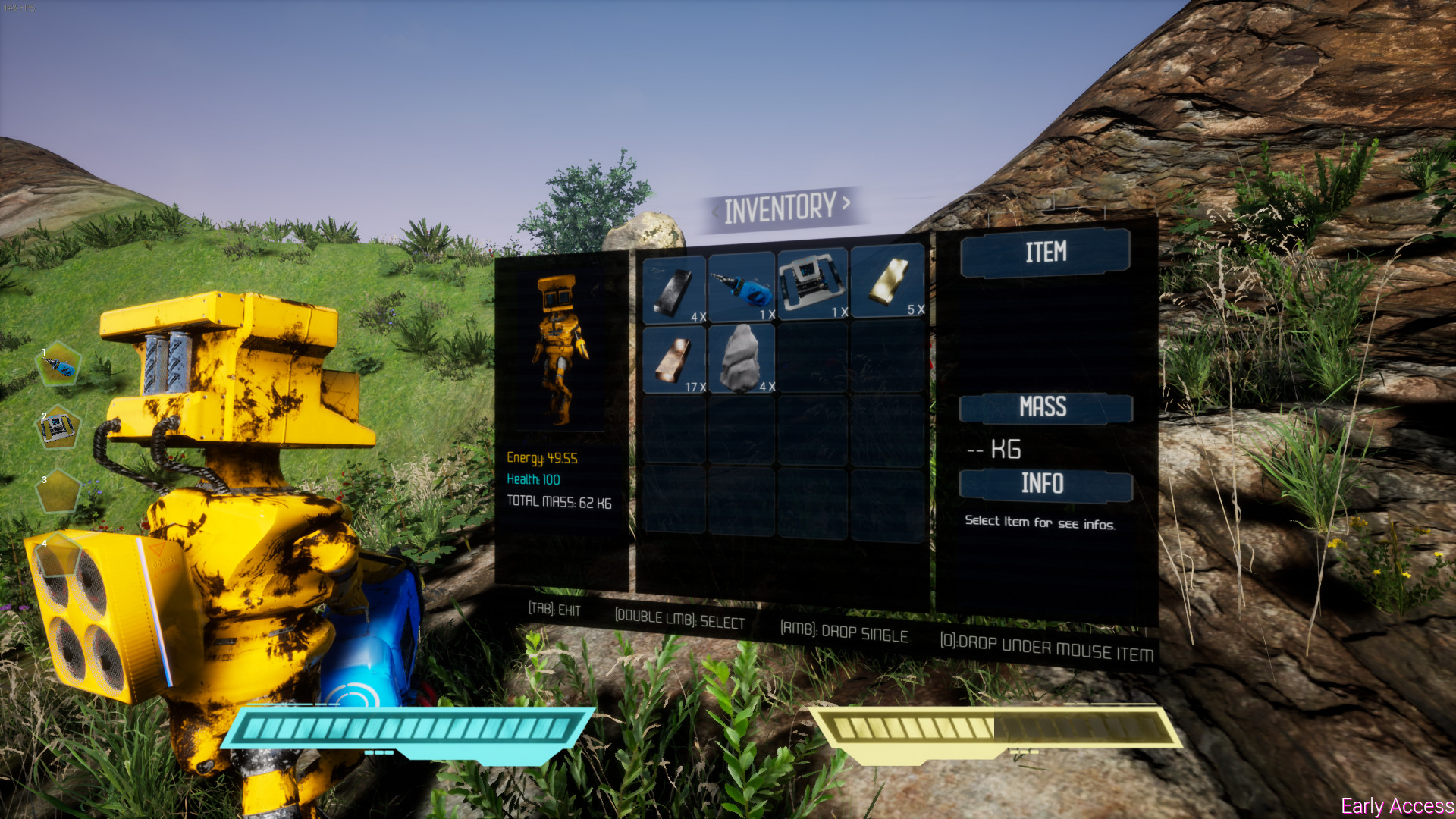 You fell on an unknown planet, you don't know why you fell and how long you have been here. Your energy is at a critical level. You must immediately start planning to fill your energy and return to Earth. Modify yourself to survive. In addition, to produce advanced products, unknown minerals, liquids, etc. investigate.