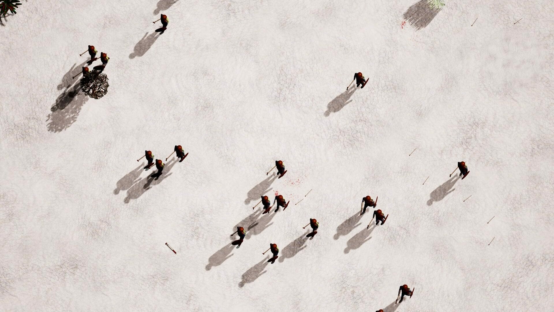 Warriors are equipped with custom sets of equipment that you design. Create armored archers or light spearmen to fend of cavalry. Every piece of a warrior's equipment will impact their speed and combat abilities. Carried items and resources are dropped on death, allowing the victor to loot the battlefield.