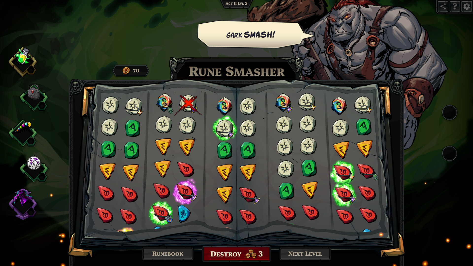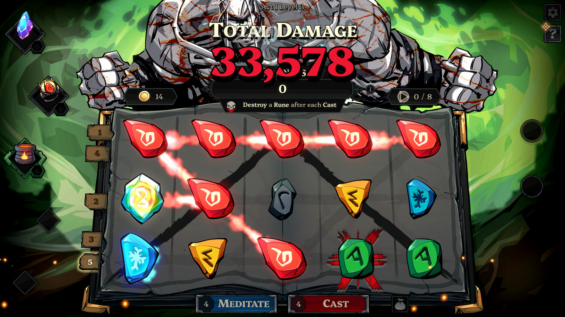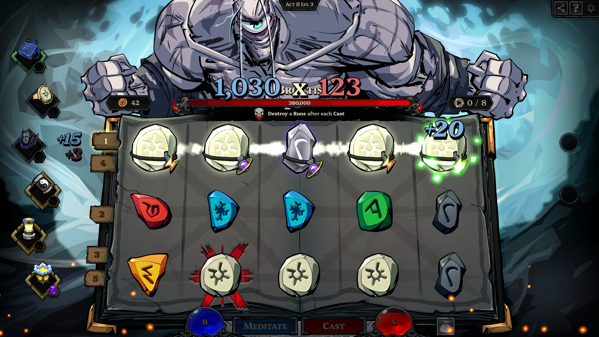 Runeborn is a dark fantasy roguelike that merges deckbuilding with a slot-machine-like mechanic.