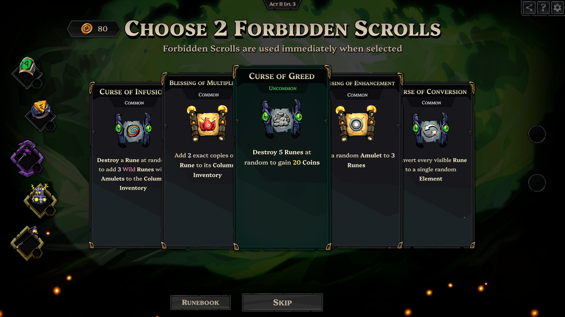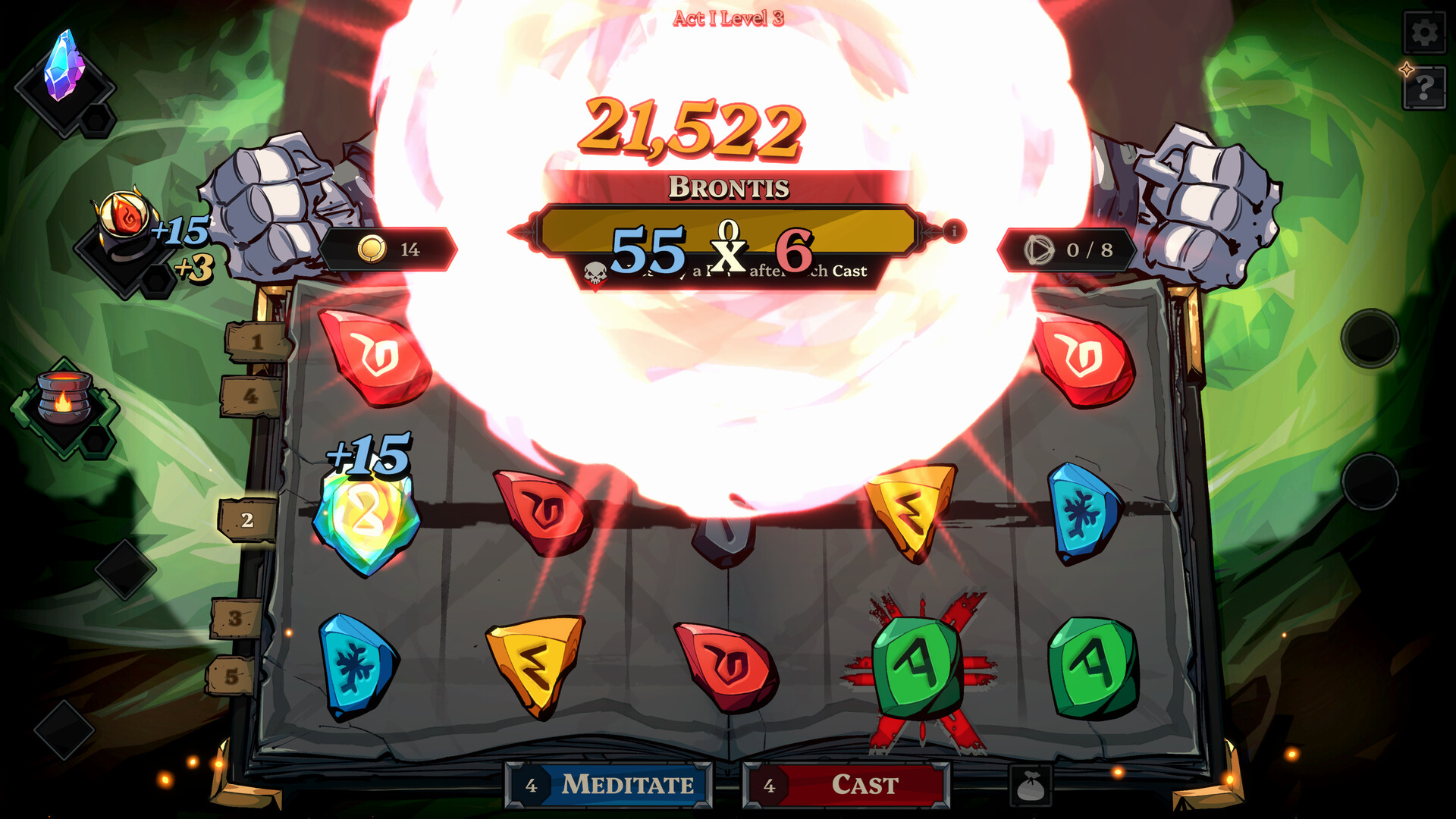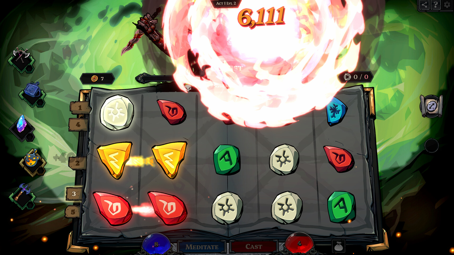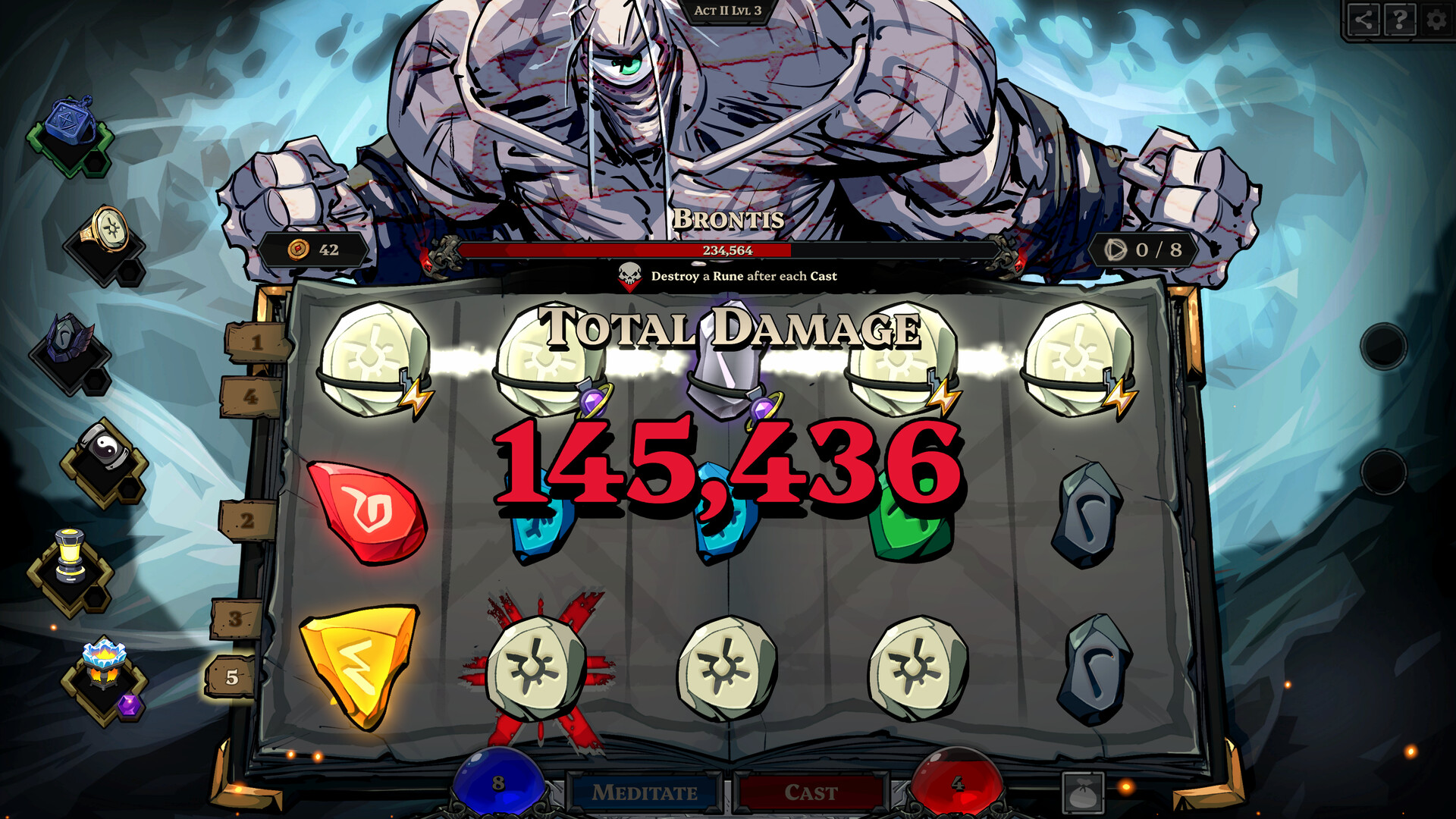 Runeborn is a dark fantasy roguelike that merges deckbuilding with a slot-machine-like mechanic.