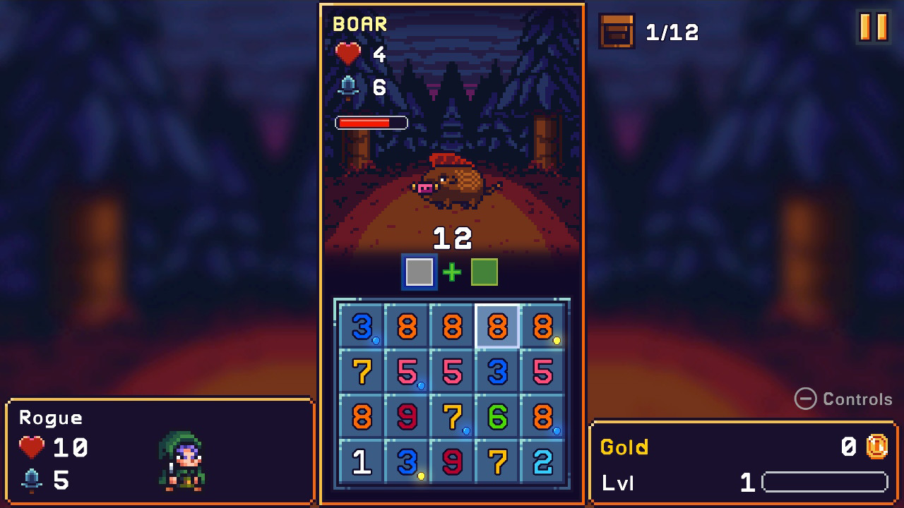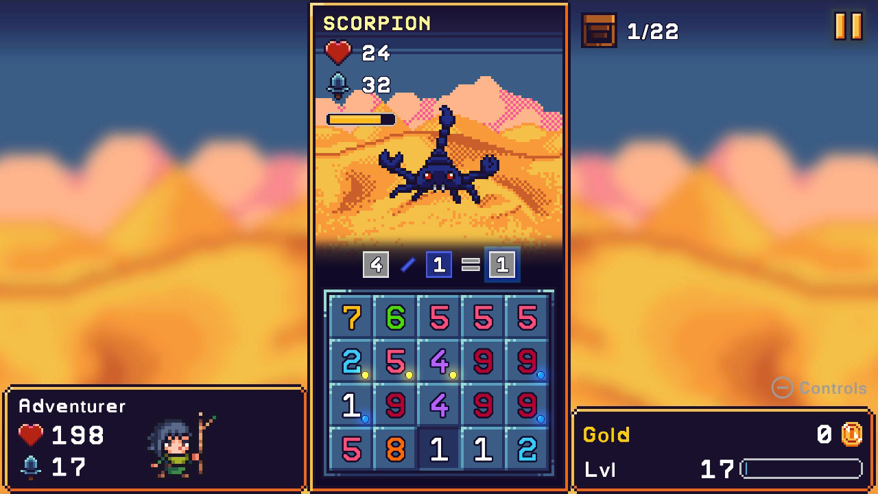 Each Dungeon will challenge you with Addition, Subtraction, Multiplication, Division or a combination of those Operators. A monster will provide you with a sum, your task is to fill the equation with the correct numbers at your disposal.