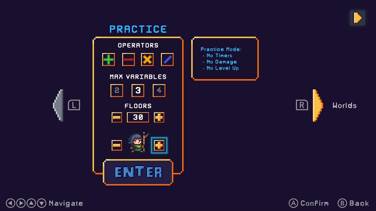 Do you think you are up for the challenge? Think twice before heading into the harder Dungeons, they do get tricky! Are you a beginner with Math? No worries! There's Practice Mode to learn the basics!