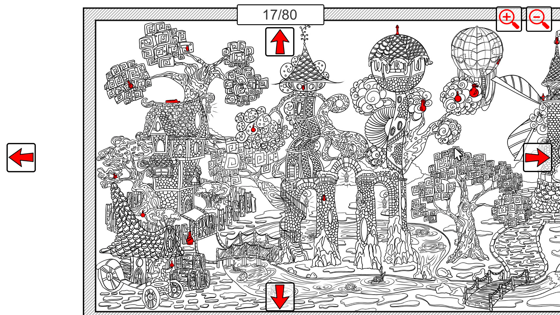 Is a game in the genre of "hidden object", in which you need to find all the cones / vessels with potions on a large location drawn in the style of "doodling". The location depicts a medieval extraordinary city
