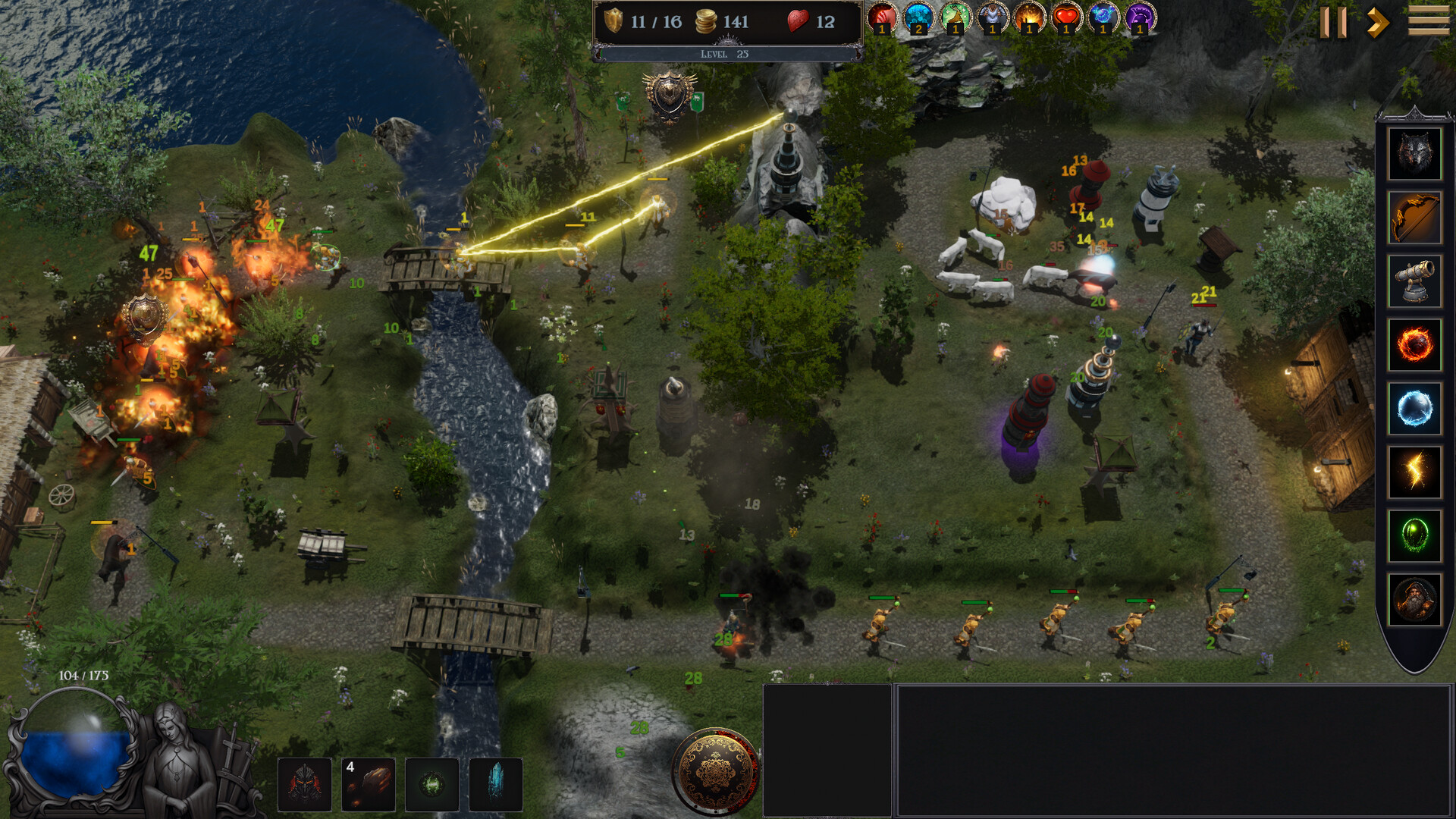 In this tower defense you enter the world of Magonia and defend it against hordes of humans, orcs, ogres and other evil forces. Fight in green graslands, dusty deserts, rocky hills, lush forests and icy tundras, adapting your strategy to the terrain and the enemy forces. Call down meteors from the sky or call reinforcements to assist you in the battle. Expand your arsenal of towers and equip them with items you loot from mighty bosses. Level up your house and learn skills to improve your towers or spells.