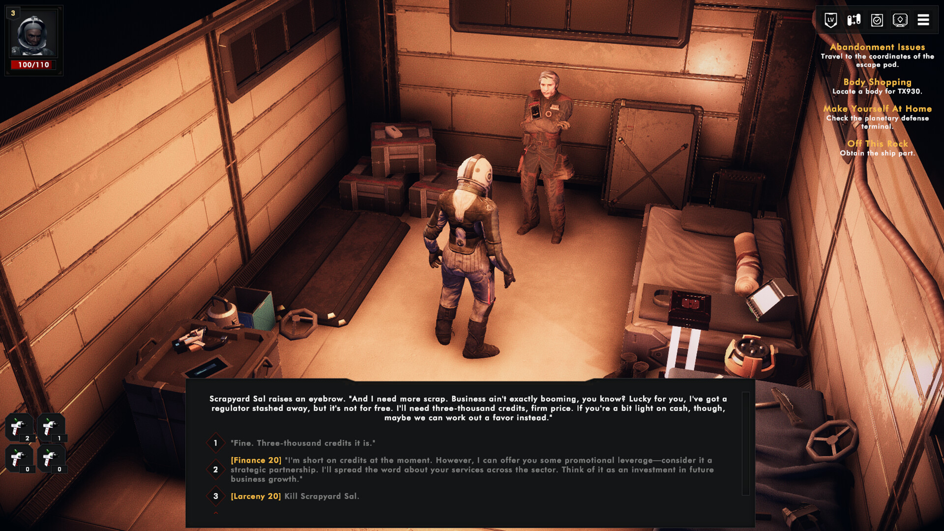 You can also hone a range of non-combat skills as well such as Engineering, Science, Computers, Biology, Finances, and Piloting. Non-technical skills include Intimidation, Persuasion, Perception, Luck, and Larceny. Each skill offers players an avenue to navigate story challenges, ensuring a multi-dimensional gameplay experience.