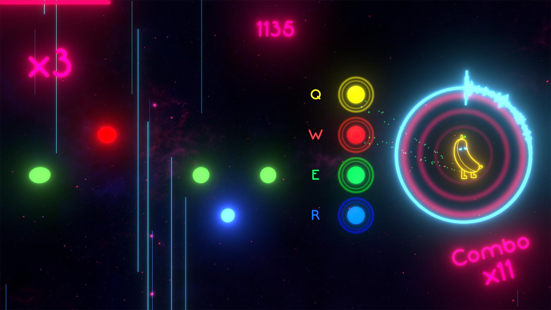 Keyboard + Mouse Gameplay: Hit notes with the keyboard while catching bonus notes using the mouse.