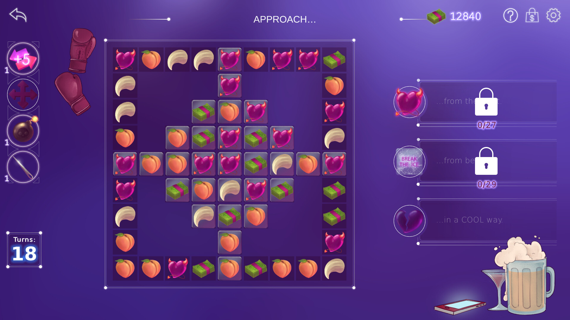 Explore new, improved stories with more exciting and diverse branching narratives. We're experimenting with POV stories, adding threesomes and generally turning it up a few notches! The plot won’t take away from the artwork and sex scenes, either. With new artists joining the ranks, expect a visual feast with even hotter still images and improved animations. The puzzle sections are getting upgrades as well with new level objectives, improved balance and better overall feel.