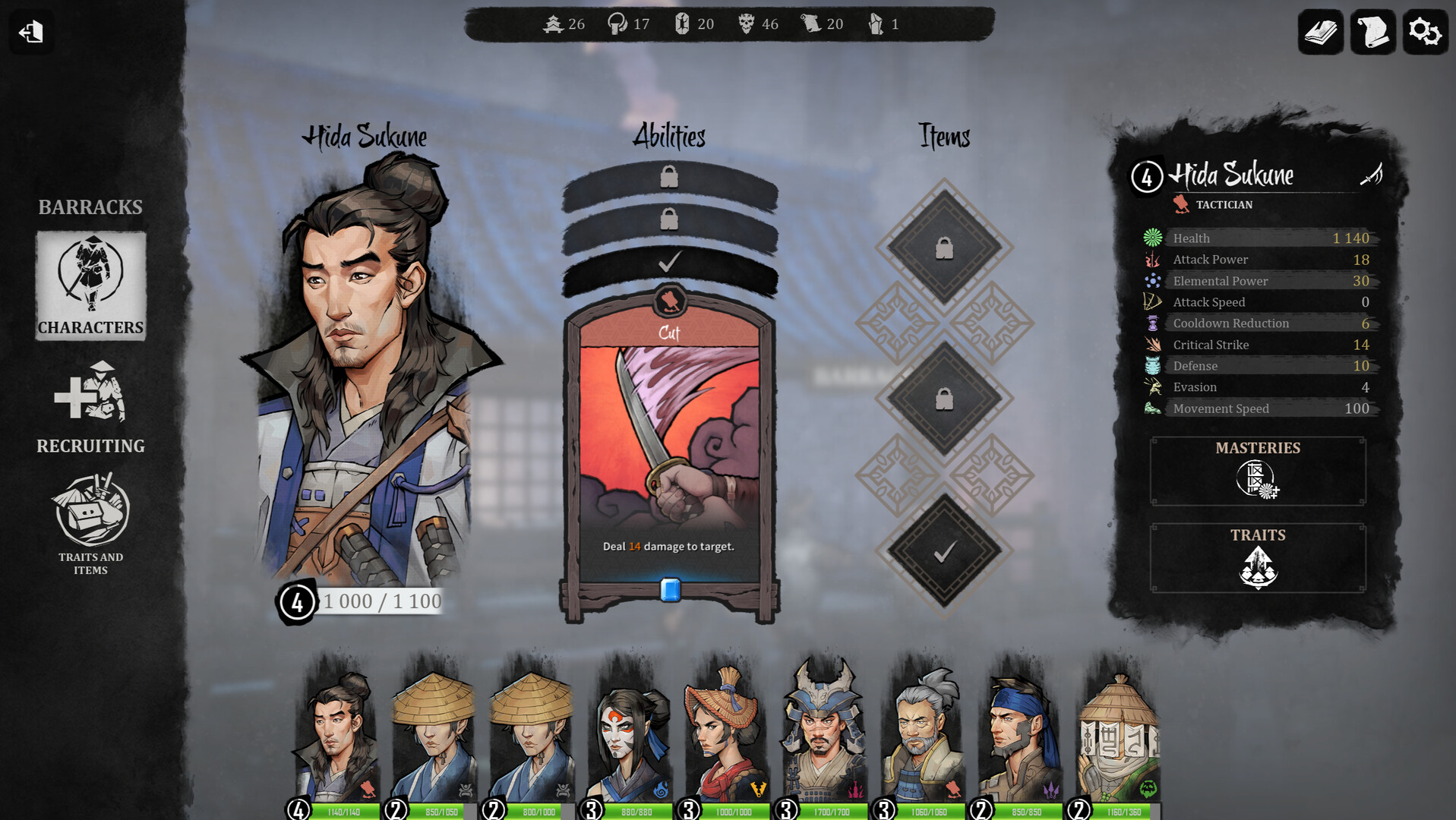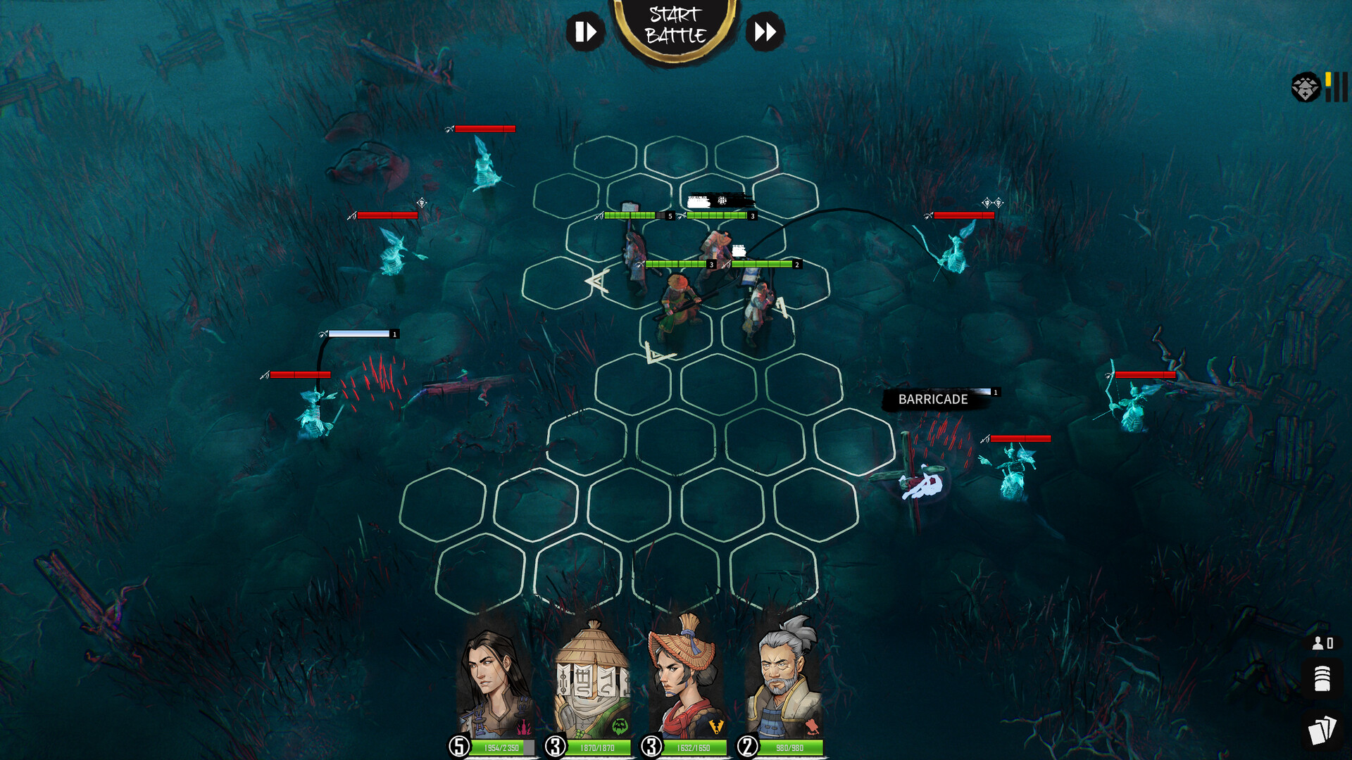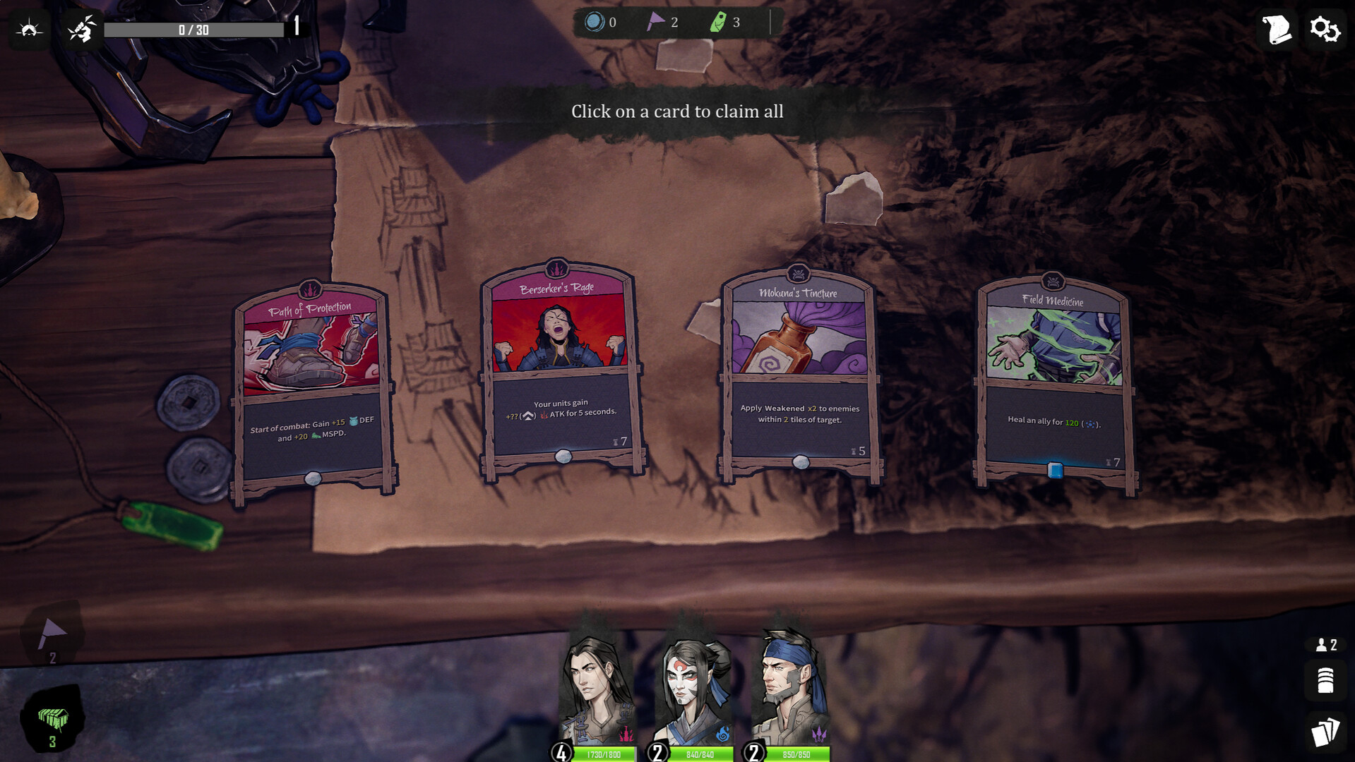Gather and equip both ability and item cards to your samurai, making them even stronger as you progress. Building powerful synergies/combinations between your party members will be crucial in determining the outcome of each battle.