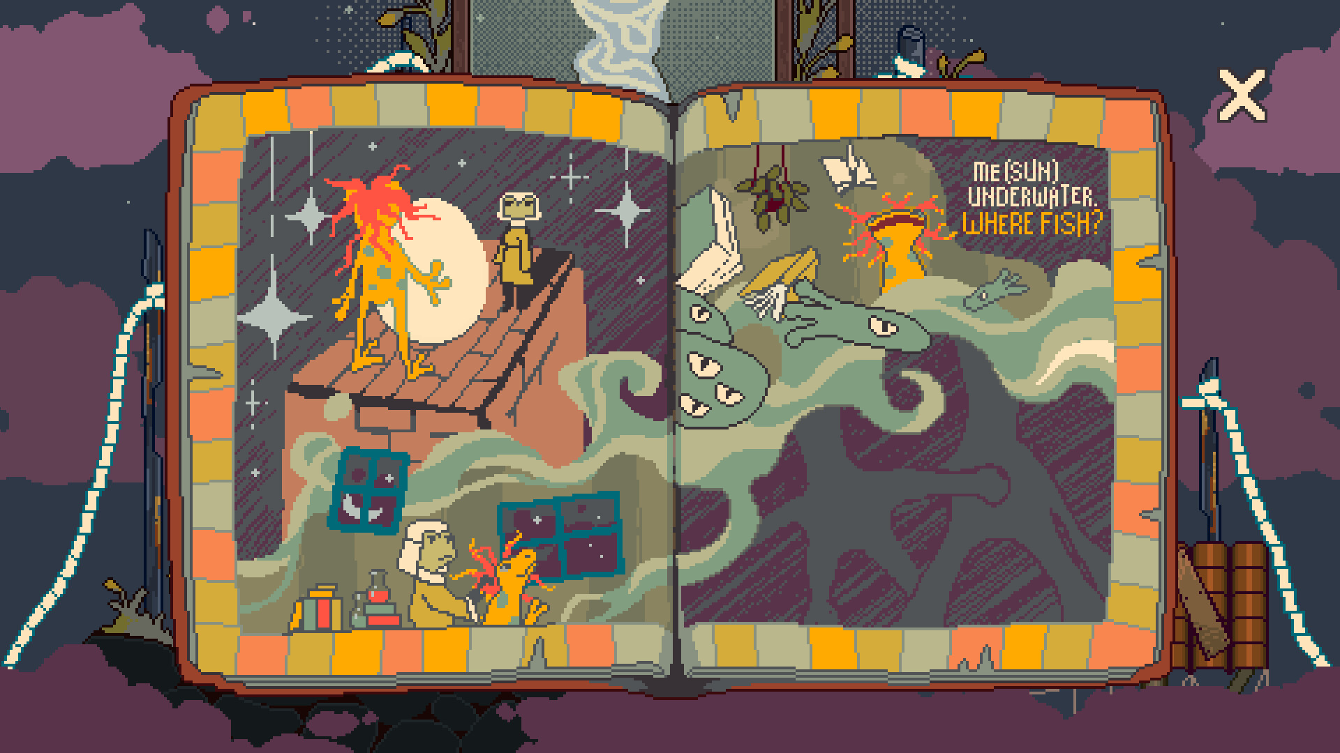— Branching narrative. Your decisions will result in one of three endings. — Enchanting small town atmosphere. The people of Svargo will gladly share their stories with you, so hear them out. You never know when a good listener can change someone's life. — Interactive backgrounds with hidden objects. Try to find them all and piece together the lore of this world. — A diary with colorful and funny entries that change depending on your choices. — Masterful pixel art to immerse you in the fabulous world of the game. — A heartfelt journey filled with childlike wonder, intriguing worldbuilding and life-changing discoveries. — Original soundtrack to invoke the magic of Svargo. — Oh, one more thing! If the weather is good, the one and only adventurer (whose name is yet to be learned) will invite you to join the quest for the legendary frog! Just don't go into the mines, even if you hear a distinct "ribbit" from there.