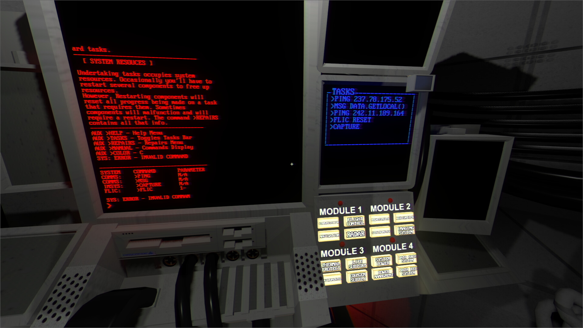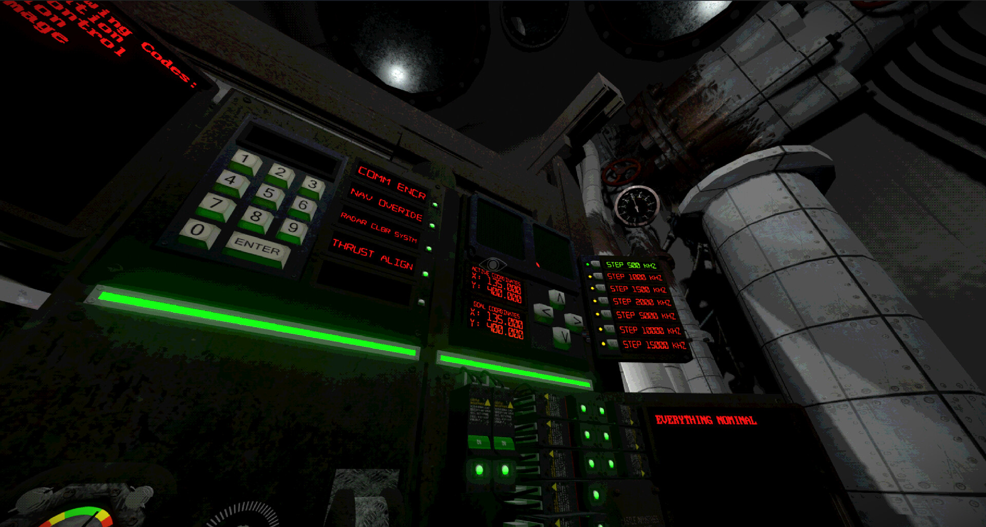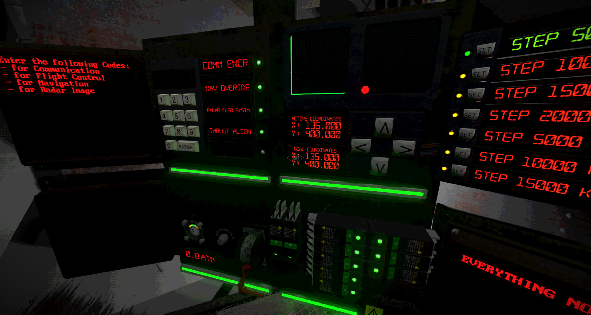 You must use the instruments in the ship to complete tasks and repair malfunctioning systems. Each instrument is unique, so make sure to pay attention to the information it's providing you with! But that is not enough, since your systems are prone to malfunctions, you will need to maintain them by physically interacting with them.