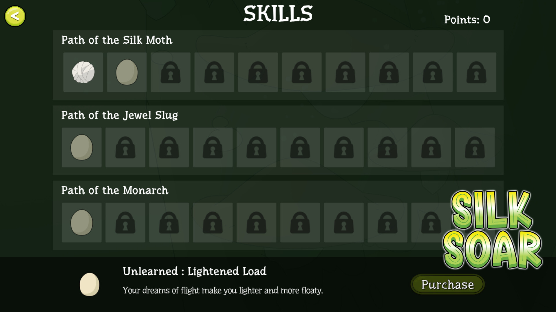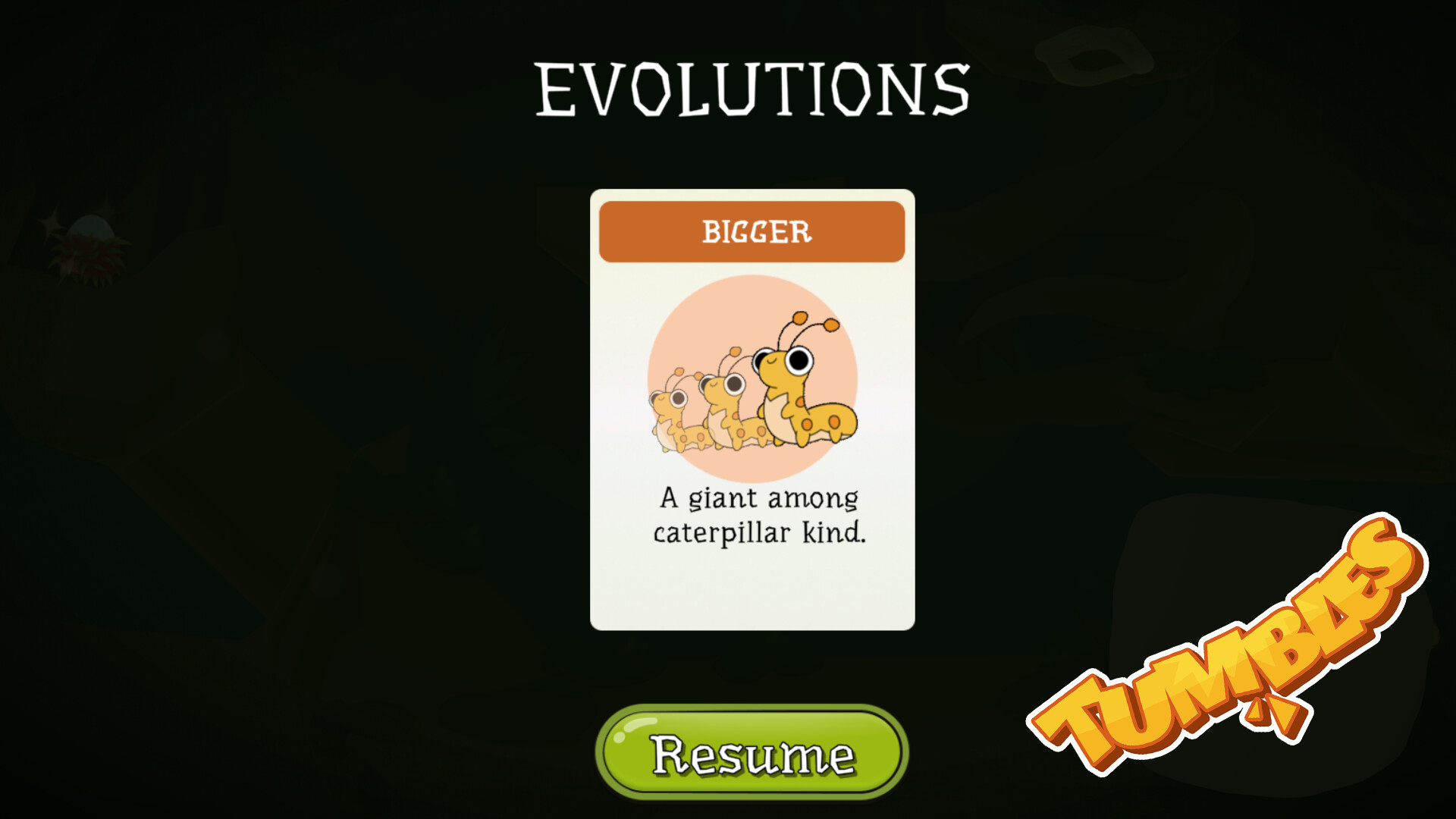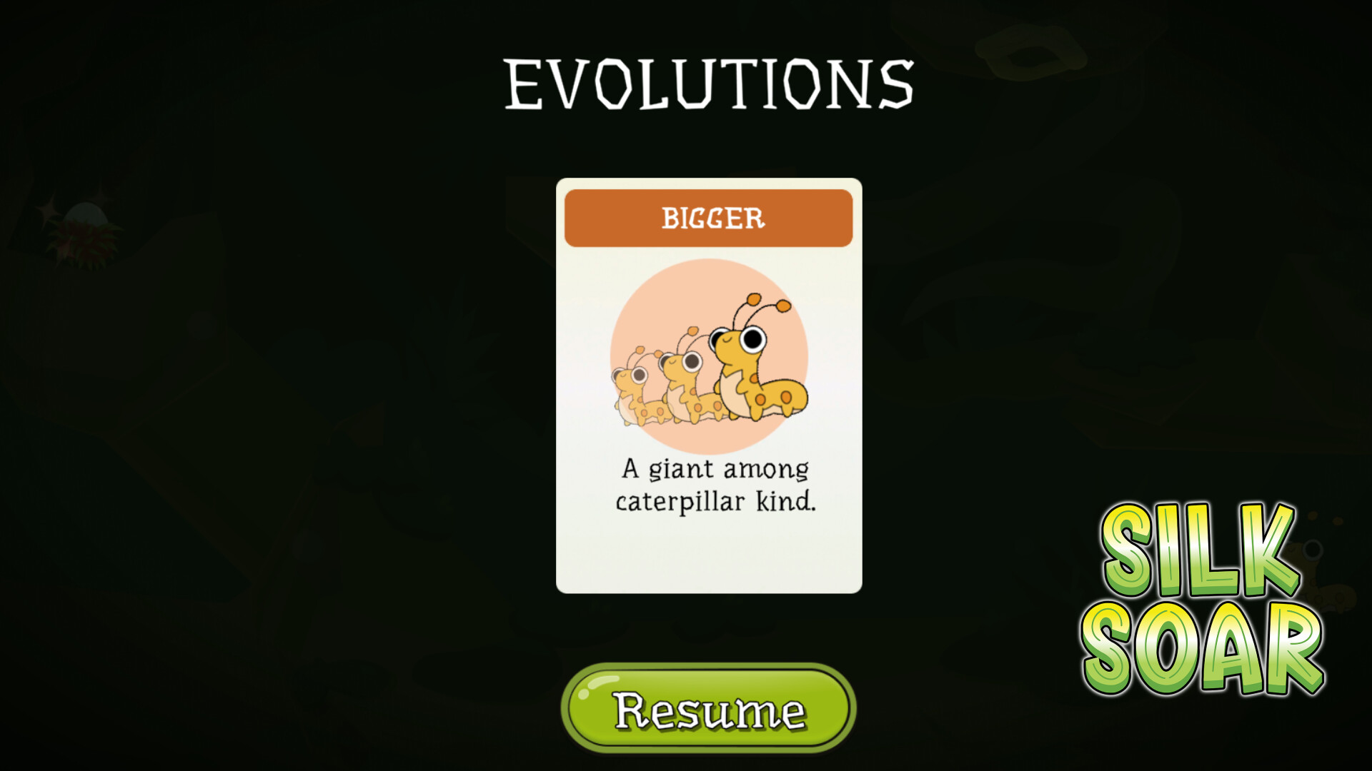Each time you choose to build your cocoon there is an increasing chance of evolutions affecting your next caterpillar. Will you be a different colour, have a more bouncy body, or have tunnel vision? What combinations will you have and will they help or hinder your next climb?
