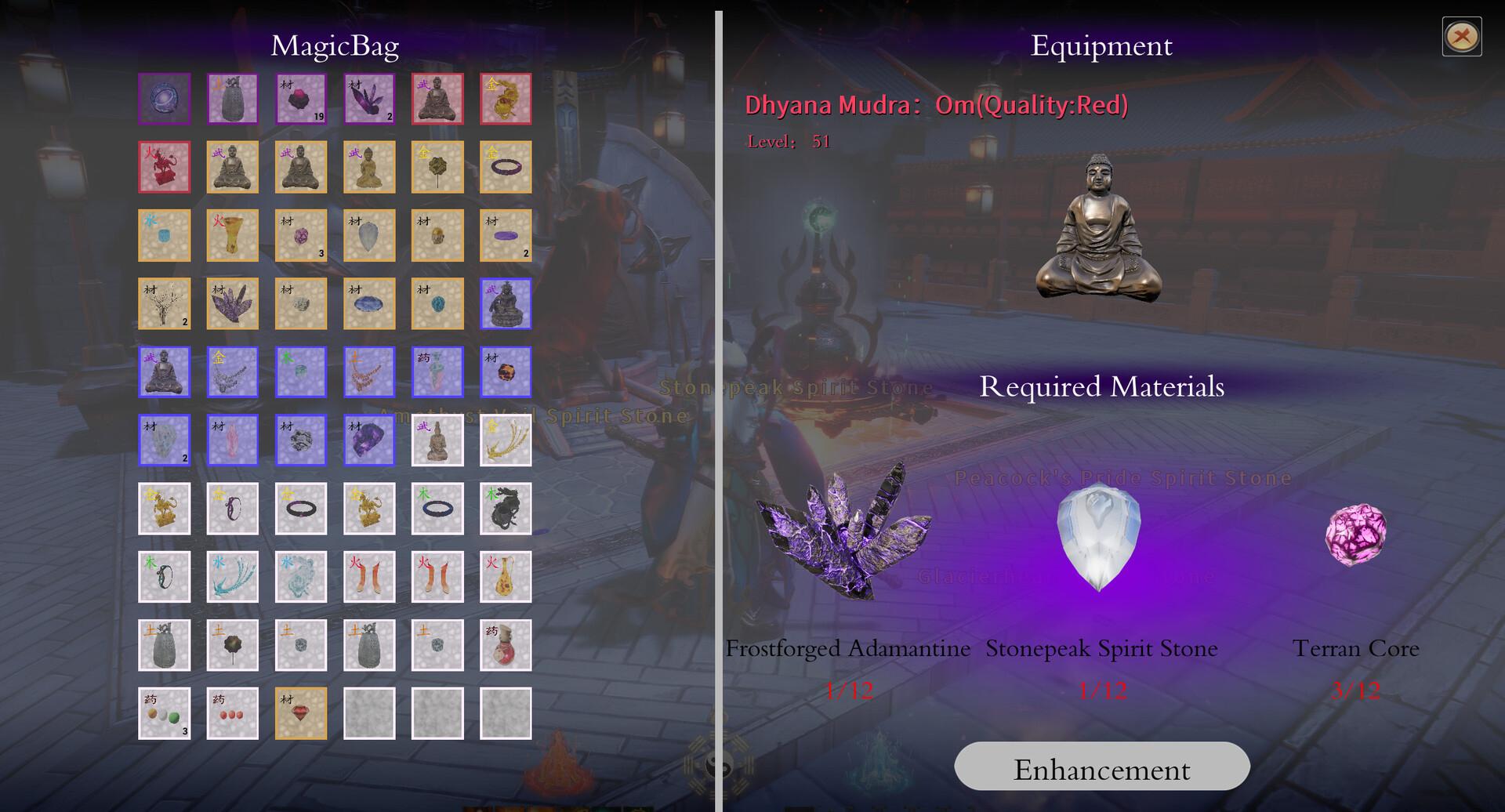 Combine equipment with diverse attributes to enhance the character's base stats. Equipment can also be upgraded at the NPC Refining Workshop.