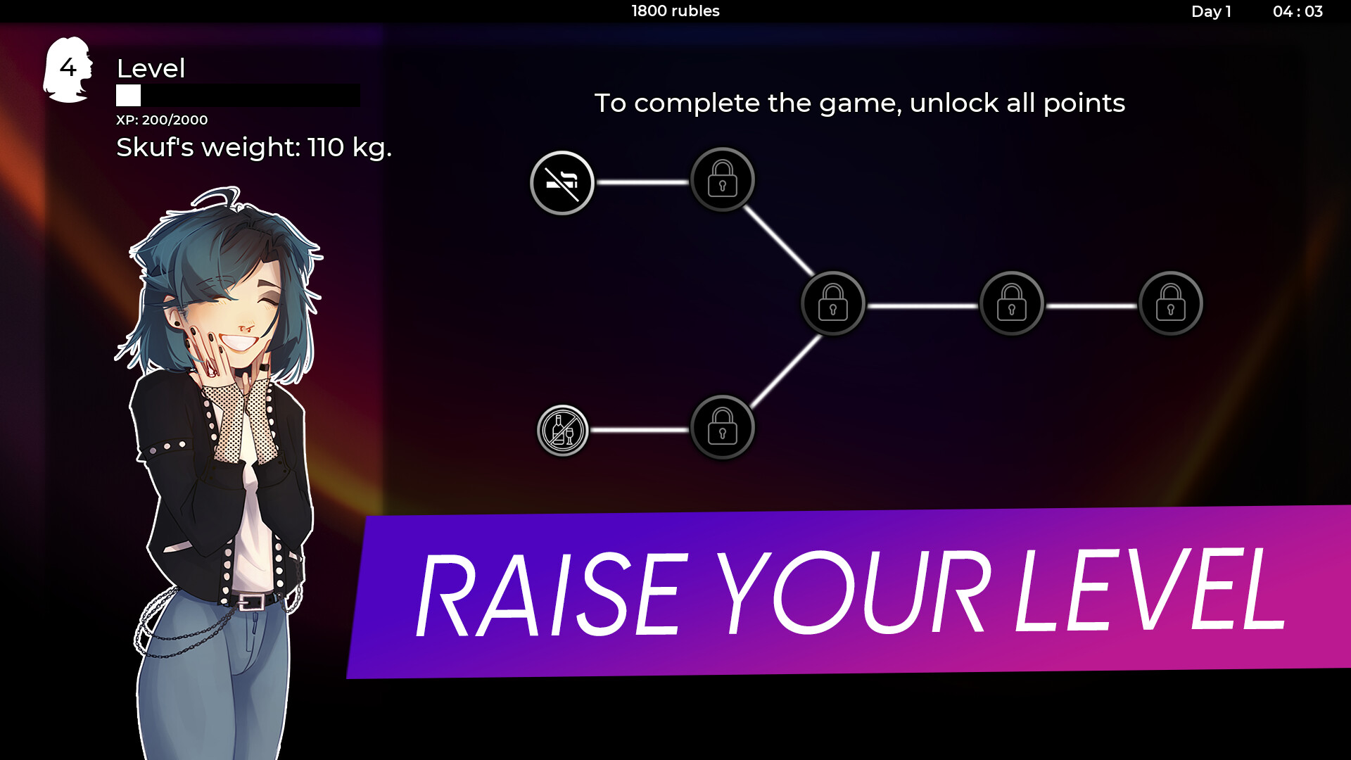 - 5 playable characters, which means 5 stories! - Tamagotchi mechanics: take care of the scoof and put it in order. - Lots of exciting mini-games, like tanks! Well, what kind of game about Scythians without tanks? - built-in Internet; - stock exchange; - vampire like about Rus and Lizards; - references to memes; - and much, much more!