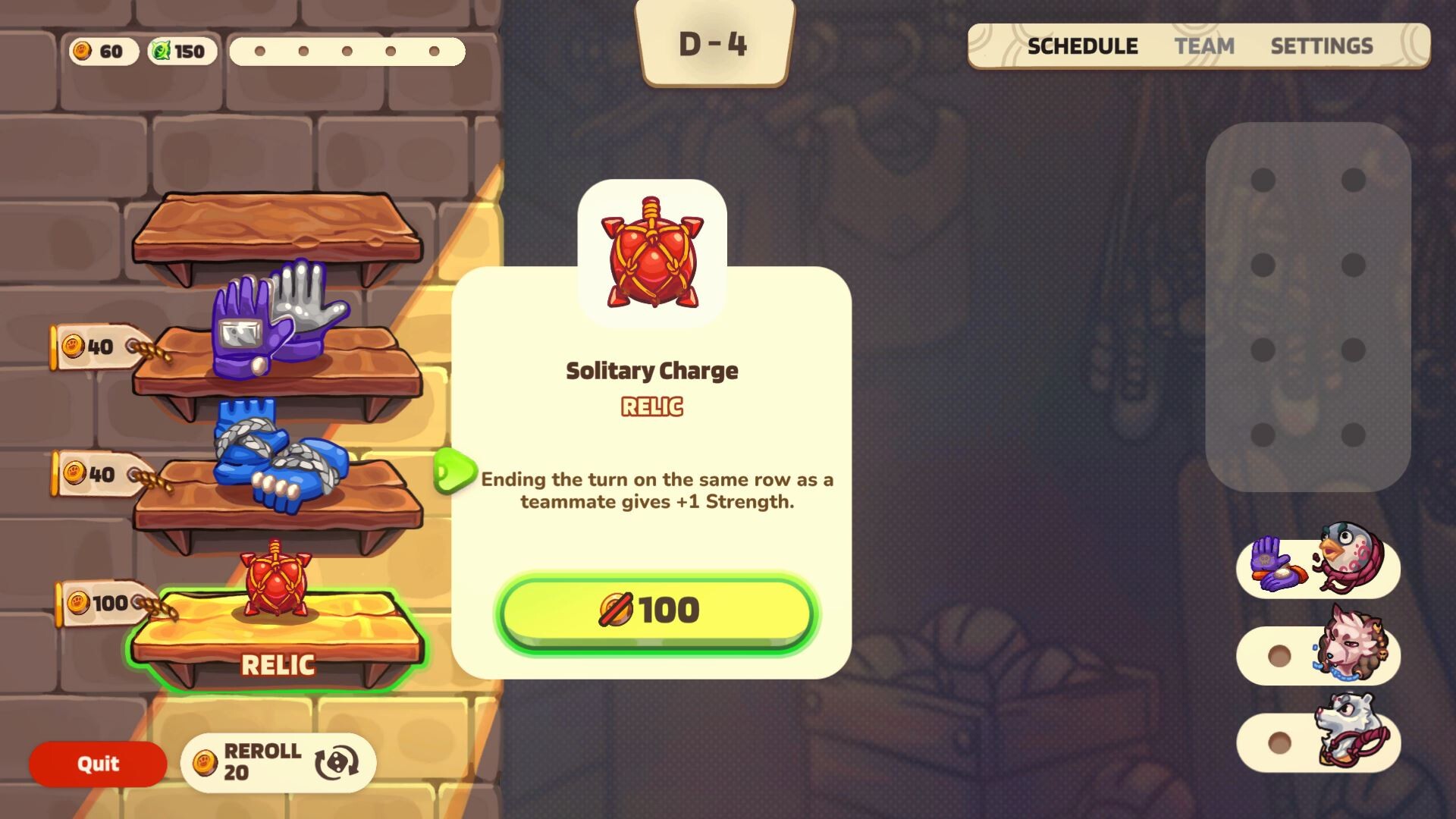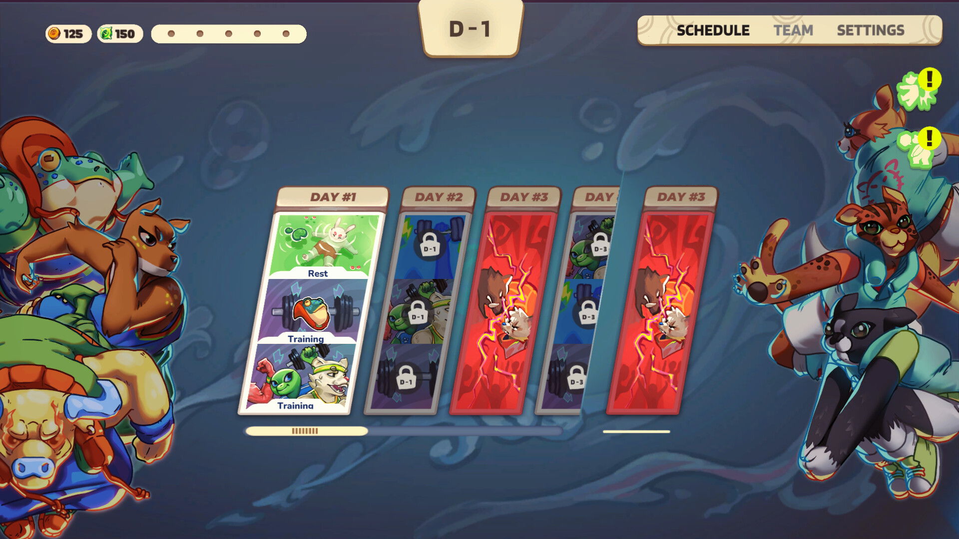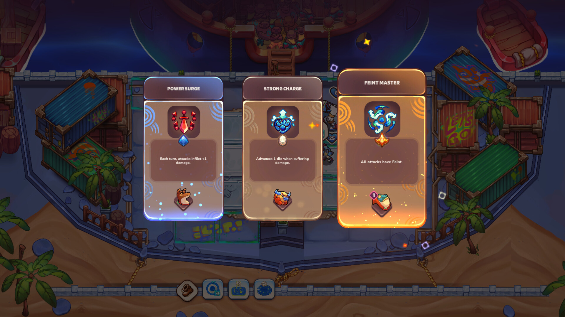 In this roguelike tournament, the cup can only be won with a string of unbroken victories. Any defeat means starting all over again. Each failure gives you an opportunity to learn and improve. Choose your training sessions, skills and items carefully to gain an advantage over your opponents.