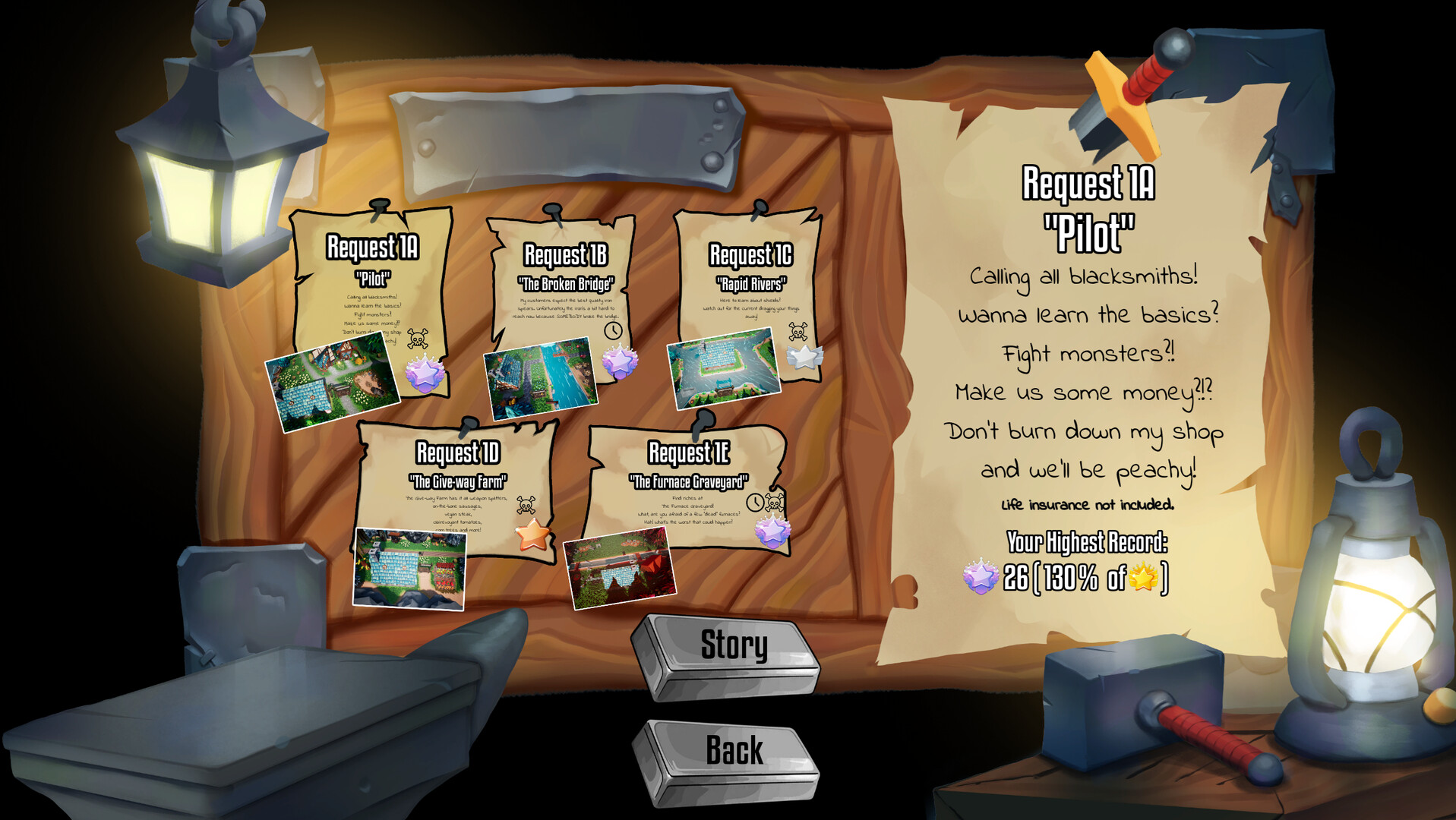 RPG Mechanics - Carefully manage your Blacksmith’s HP, stamina and weapon durability...