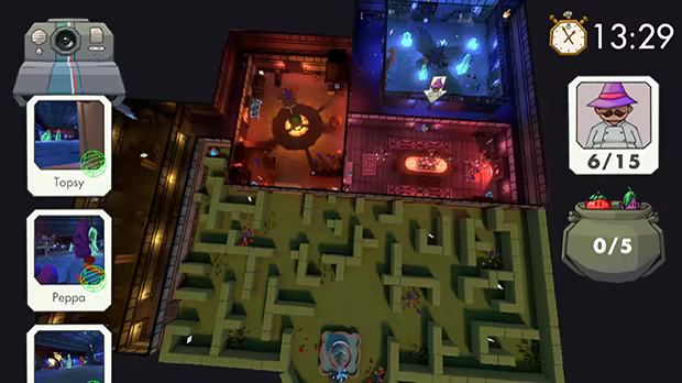 Before each round, you'll be able to choose from a variety of fun characters with individual abilities and decide with whom you'll enter the action. As the Hunter, you'll search for the snacks gone loose and try to return them back into the cauldron. Scour all the different rooms and find the hidden Snacks. The Snacks are on the run from the hungry Hunters to escape their impending fate as a soup side dish. To win, you'll have to take photos of Hunters while risking getting caught.