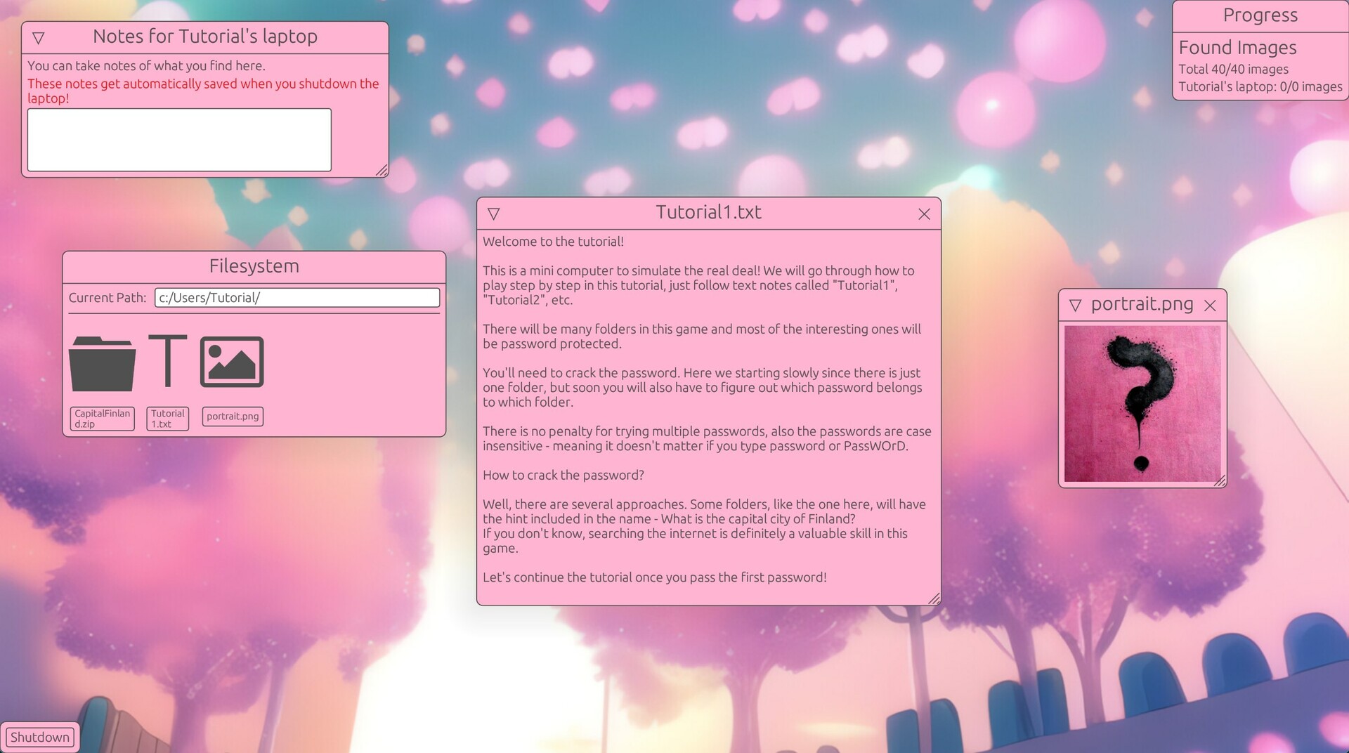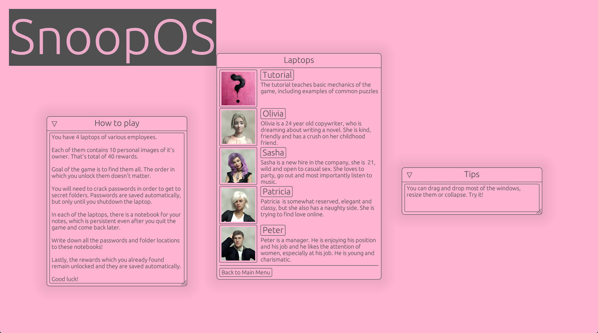 - 4 unique characters with their own laptops full of secrets, puzzles and reward images!