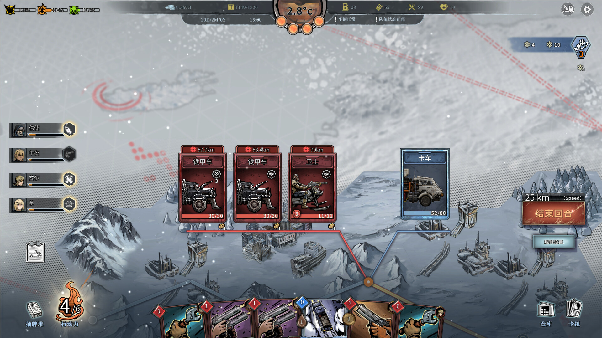 Out in the snow, you’ll constantly battle worsening cold, hunger, stress, and vehicle damage. Solving these problems is the key to making it further. Fuel, food, daily necessities, ammo, tools... your cargo isn’t just for trade—it’s for survival. Manage your resources wisely.