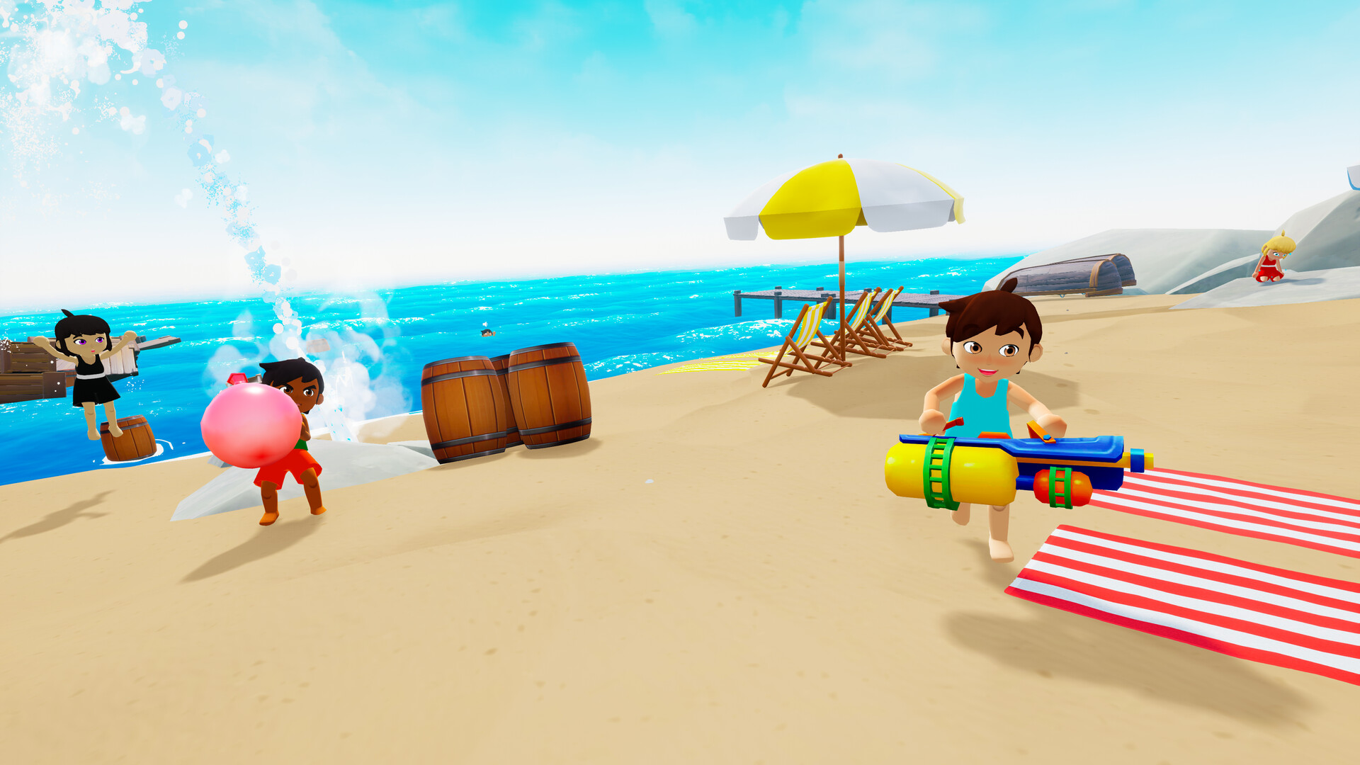 As the Soaker, you start on the beach and earn stars by soaking players. Use the water cannon to push objects into the geysers and launch them towards the tower! You can store the water cannon on your back to use other items, but it will still drop if you get soaked.