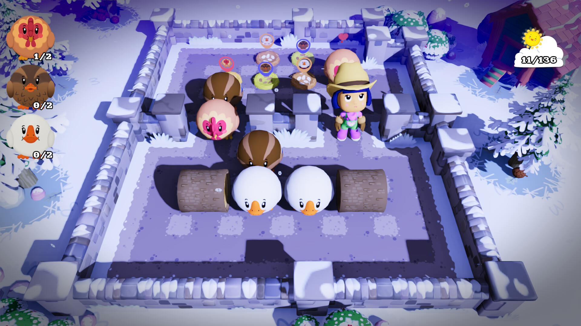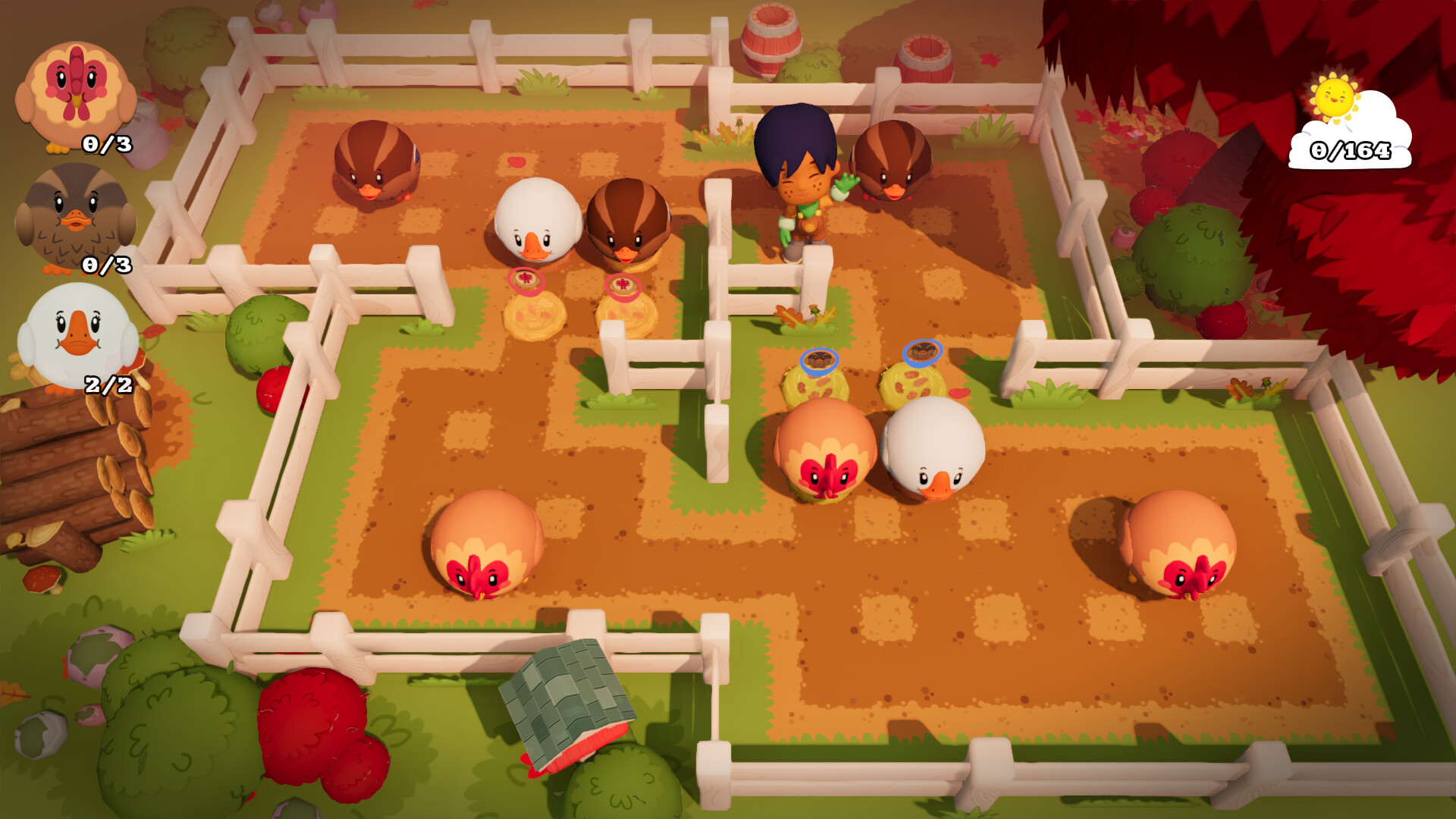 SokoFarm is a Sokoban puzzle game with bright, cosy visuals and cute characters played out in a sleepy rural setting. Roll Chonky Chickens, Ducks and Geese to their preferred nests in the fewest moves possible. Play through the seasons to see new farms and features for even more brain teasing fun!