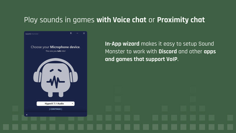 Stepping away from your computer? Put your friends on hold by looping some elevator music. Set your mic to be muted while playing too.ALL SOUND MONSTER FEATURES