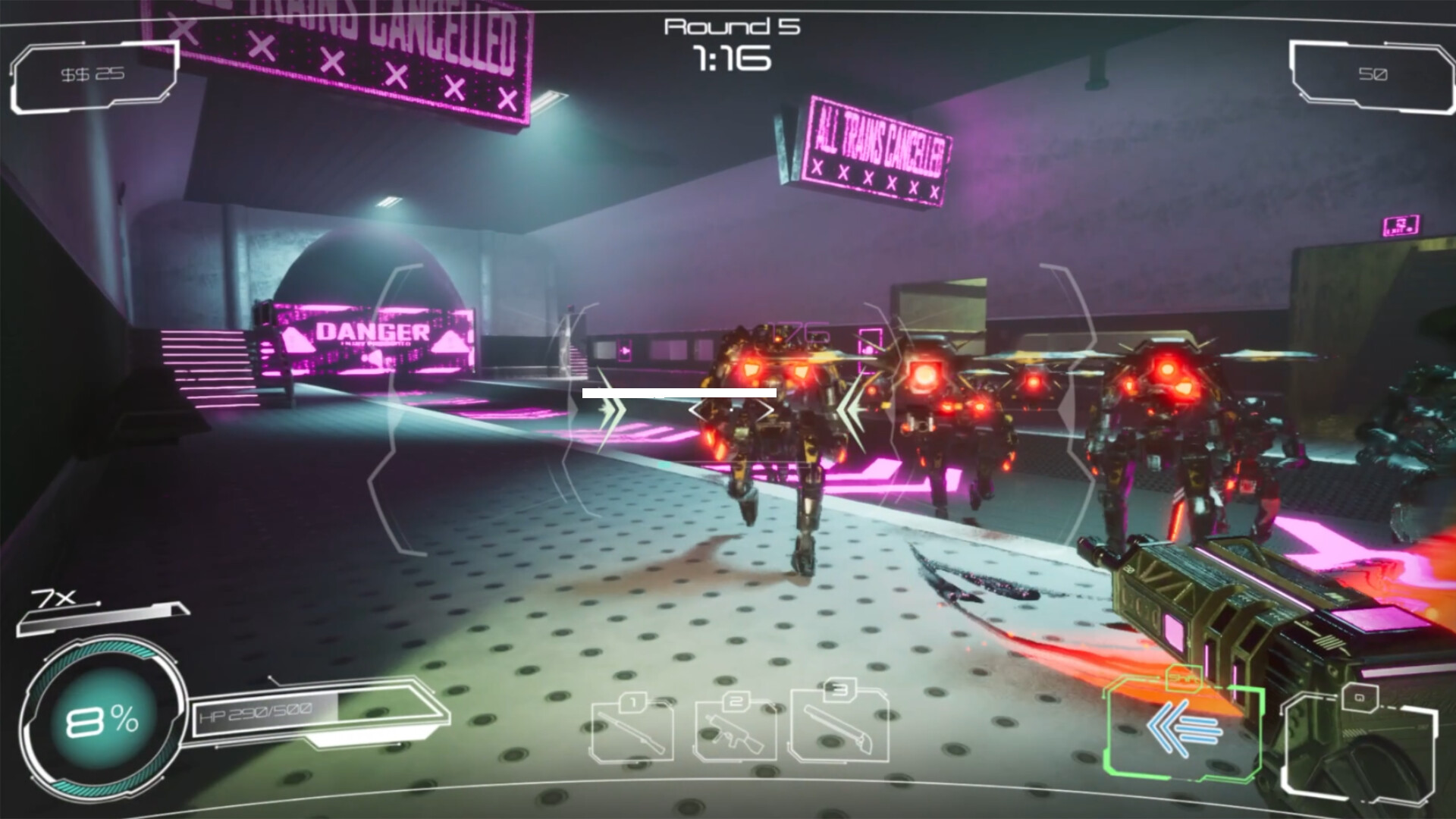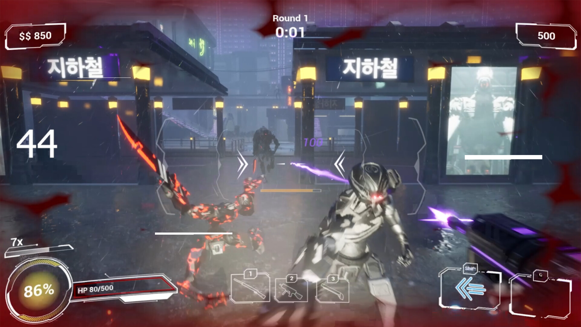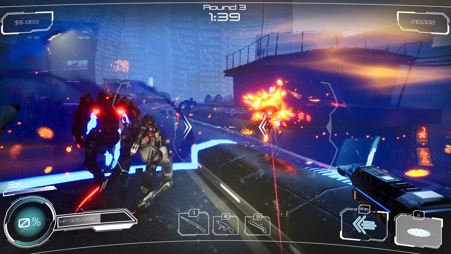 Sound of Survival is a rhythm ego shooter where you have to shoot on the beat. Fight in a cyberpunk City against hordes of robots while you groove to the music. Shoot and hit on the beat to get stronger!