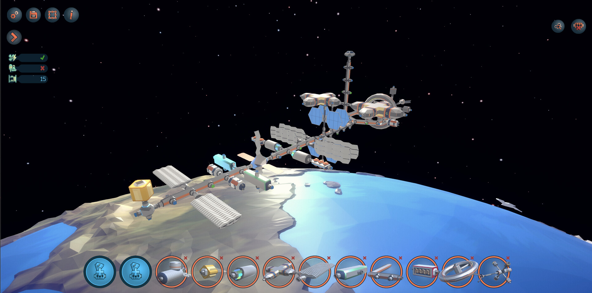 If you’re new to the game, we recommend starting with the ‘Campaign’ mode, which provides a series of objectives that will progressively introduce you to the game’s systems. If you prefer a more relaxing experience, the ‘Free Builder’ mode offers a large palette of modules and lets you experiment by coming up with your own creative designs.