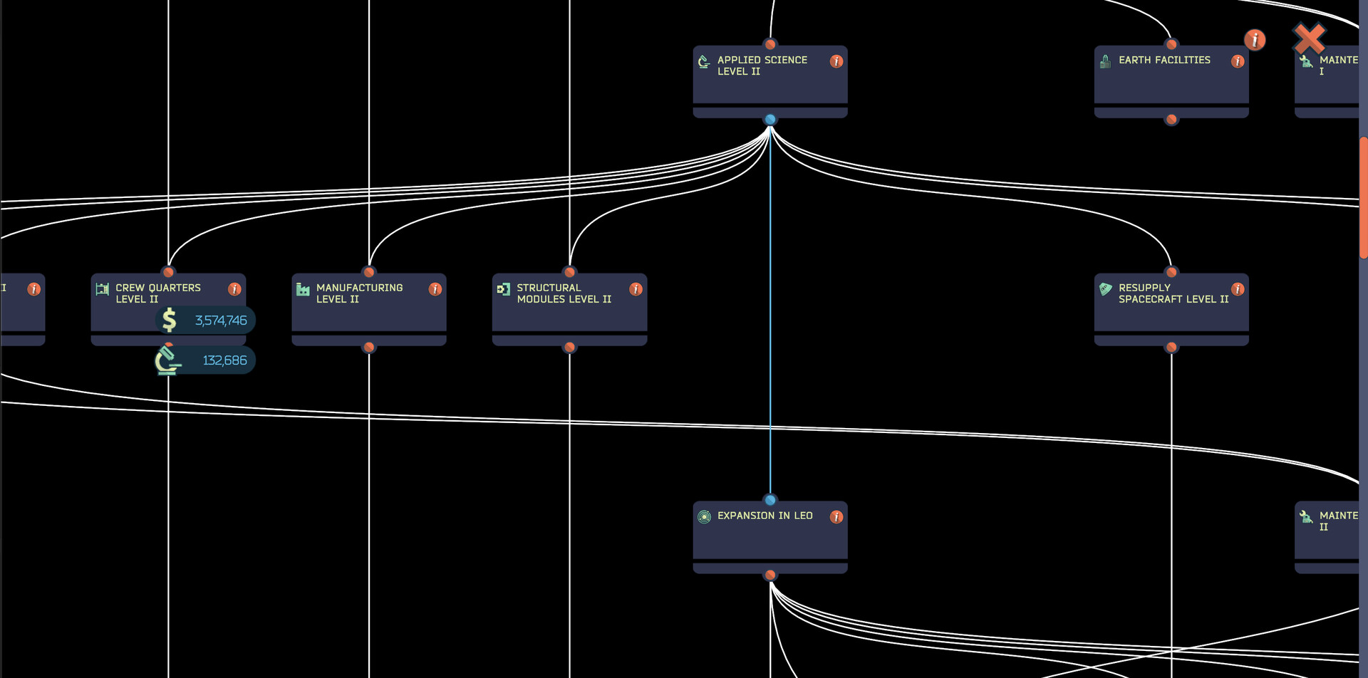 Once you’ve established a solid presence in LEO, expand your reach by opening further outposts in Geosynchronous Orbit (GSO), Earth-Sun Lagrange Point 2 (L2), and Lunar Orbit (Earth-Moon Lagrange Point 1). Every step along the way contributes to the development of the 'Lunar Space Elevator’ megaproject, which will open up a wide range of financial and scientific opportunities.