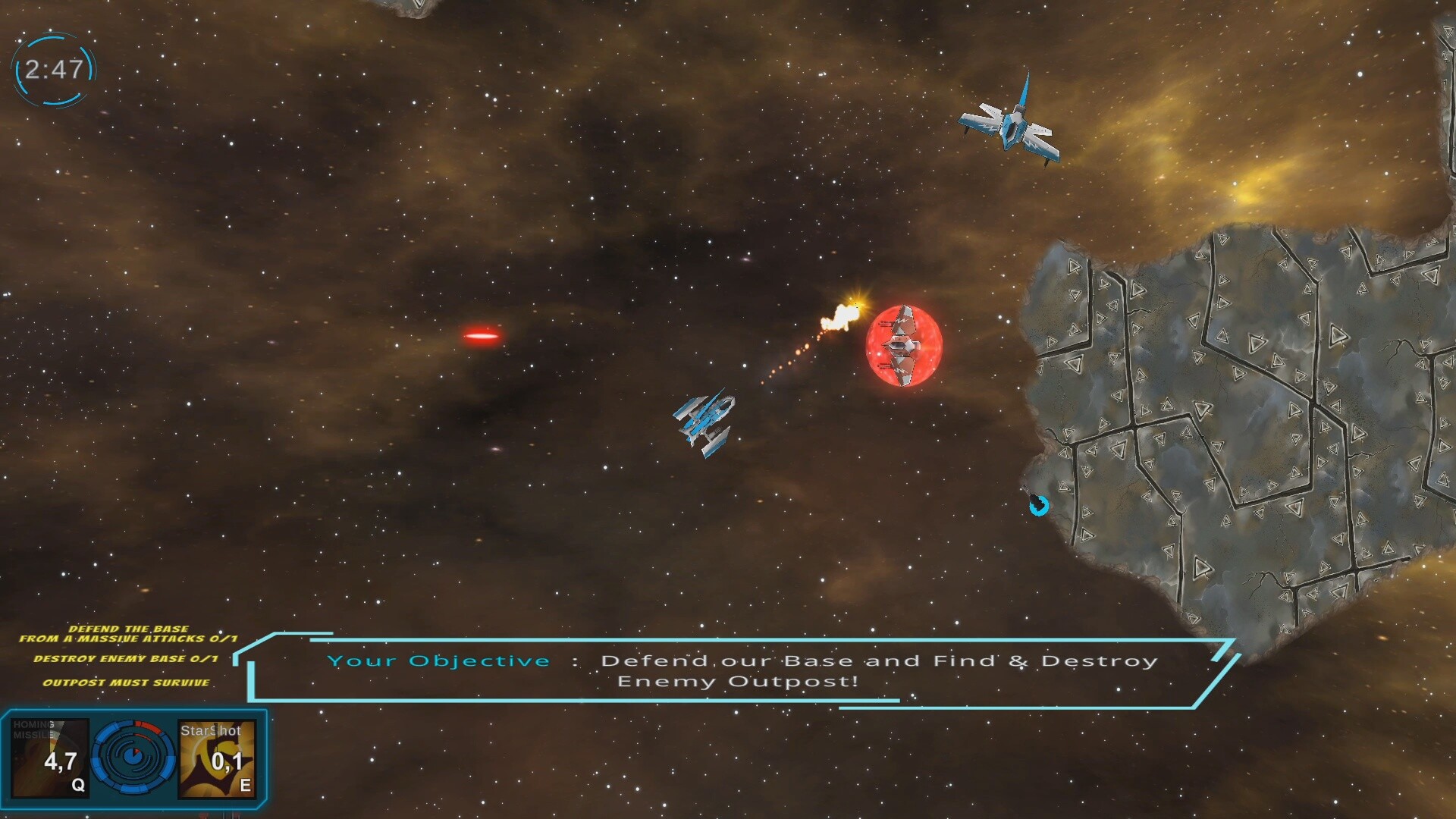Space Warden is top-down shooter in space where whole environment can be destroyed. Use lots of weapons which can burn, stun, damage, explode enemy ships, bases and terrain. Use turrets to defend your base and complete various missions.