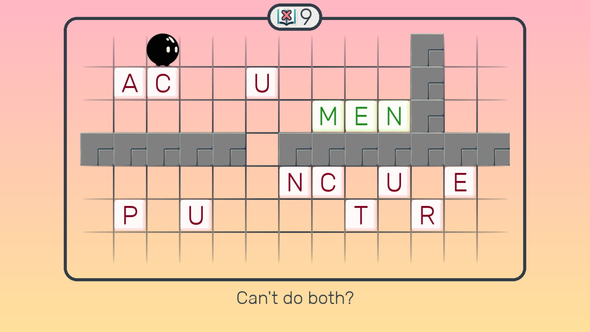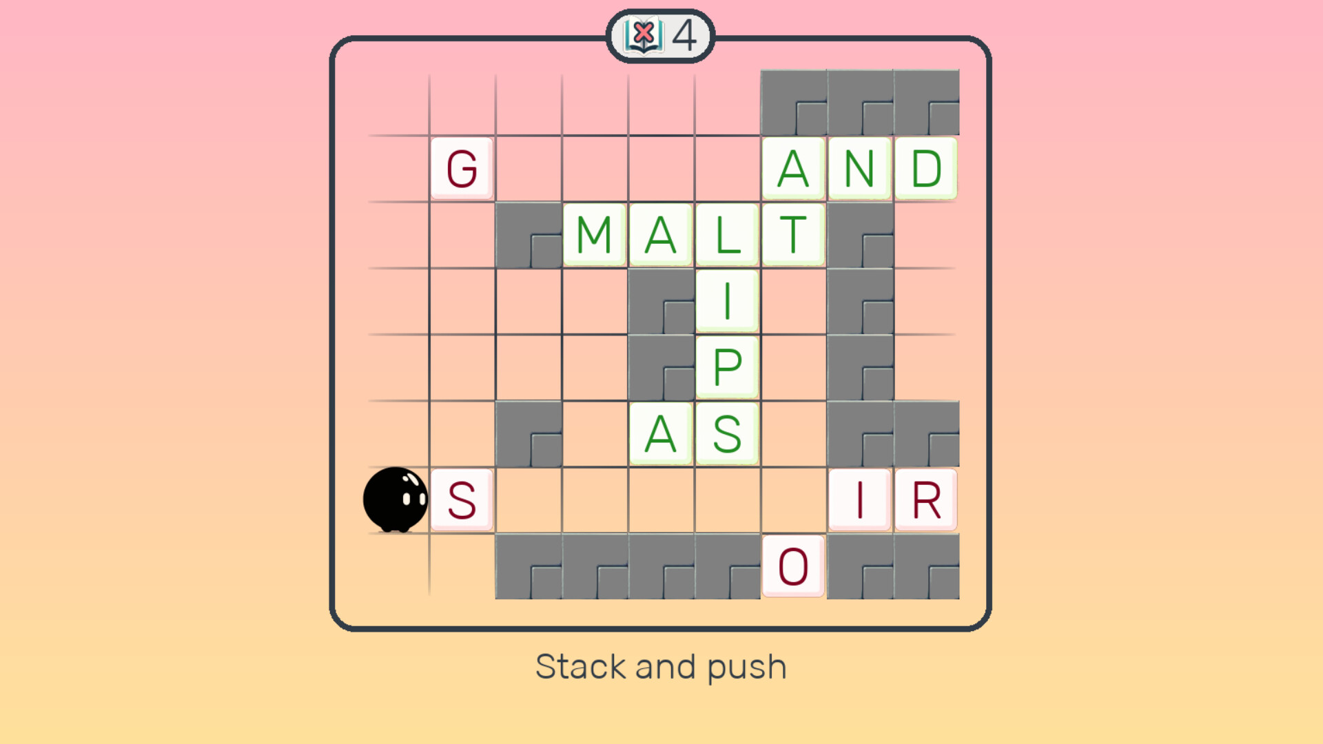 While the main challenge is word-based, there’s a moderately increasing Sokoban (block-pushing) element as the game progresses.