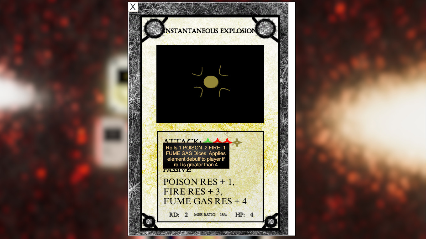 Split Tactics is a casual game about choices. There are a total of 13 elements in this game. The 6 basic elements are: Fire, Ice, Poison, Dark, Light and Curse. Then there are 7 more that are their combinations: Chaos (Fire+Dark), Reflection (Ice+Light), Toxic Mist (Poison+Dark), Madness (Dark+Curse), Fume Gas (Fire+Poison), Horror Breath (Ice+Dark) and Divine Flame (Light+Fire). Each element basic or not, has its own effects when applied to an enemy. Players should choose spells based on effectiveness to creatures and also to avoid making opponent the next most powerful mage. A good strategic balance is required to overcome opponent and also stay alive for the duration of the game.
