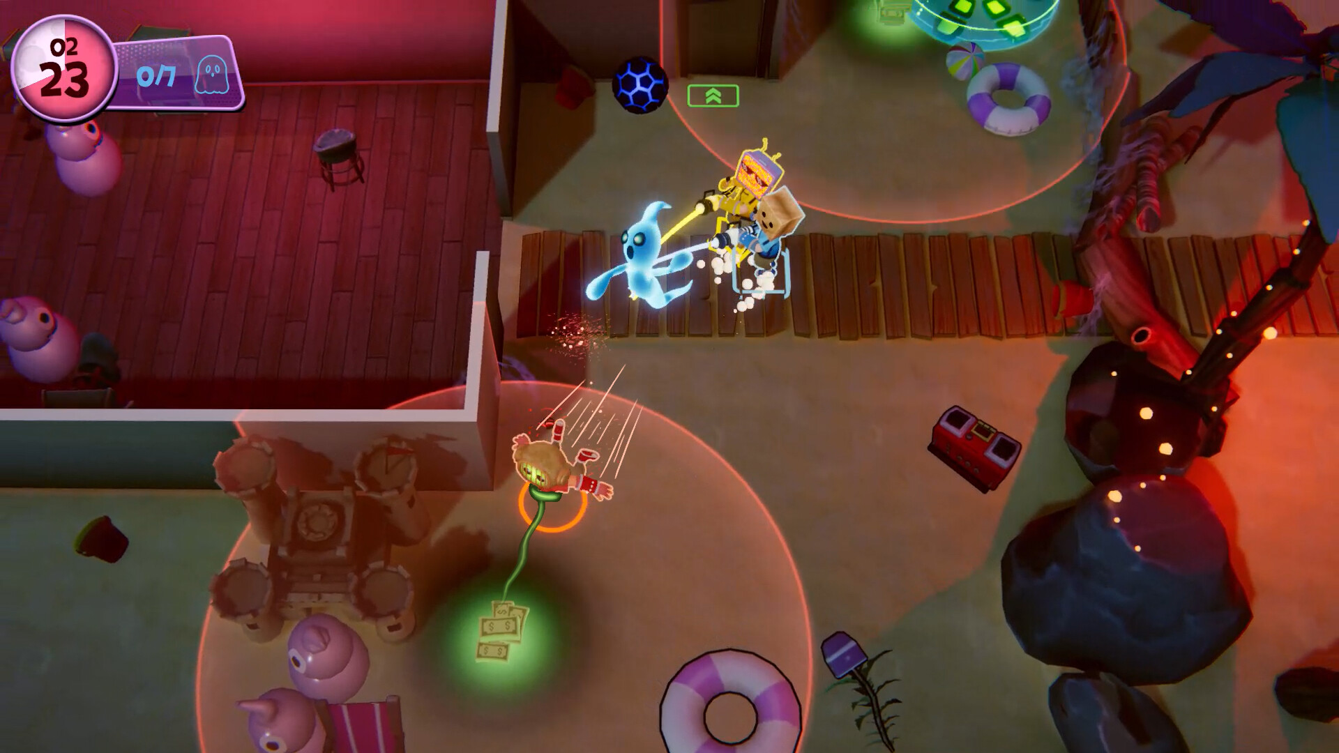 Spook-A-Boo is a ghost hunting couch co-op game for 1-4 players. Play with friends and family to seek out and capture ghosts hiding in plain sight. Detect, scan, hook and trap all the troublemaking ghosts and have a spook-tacular time.