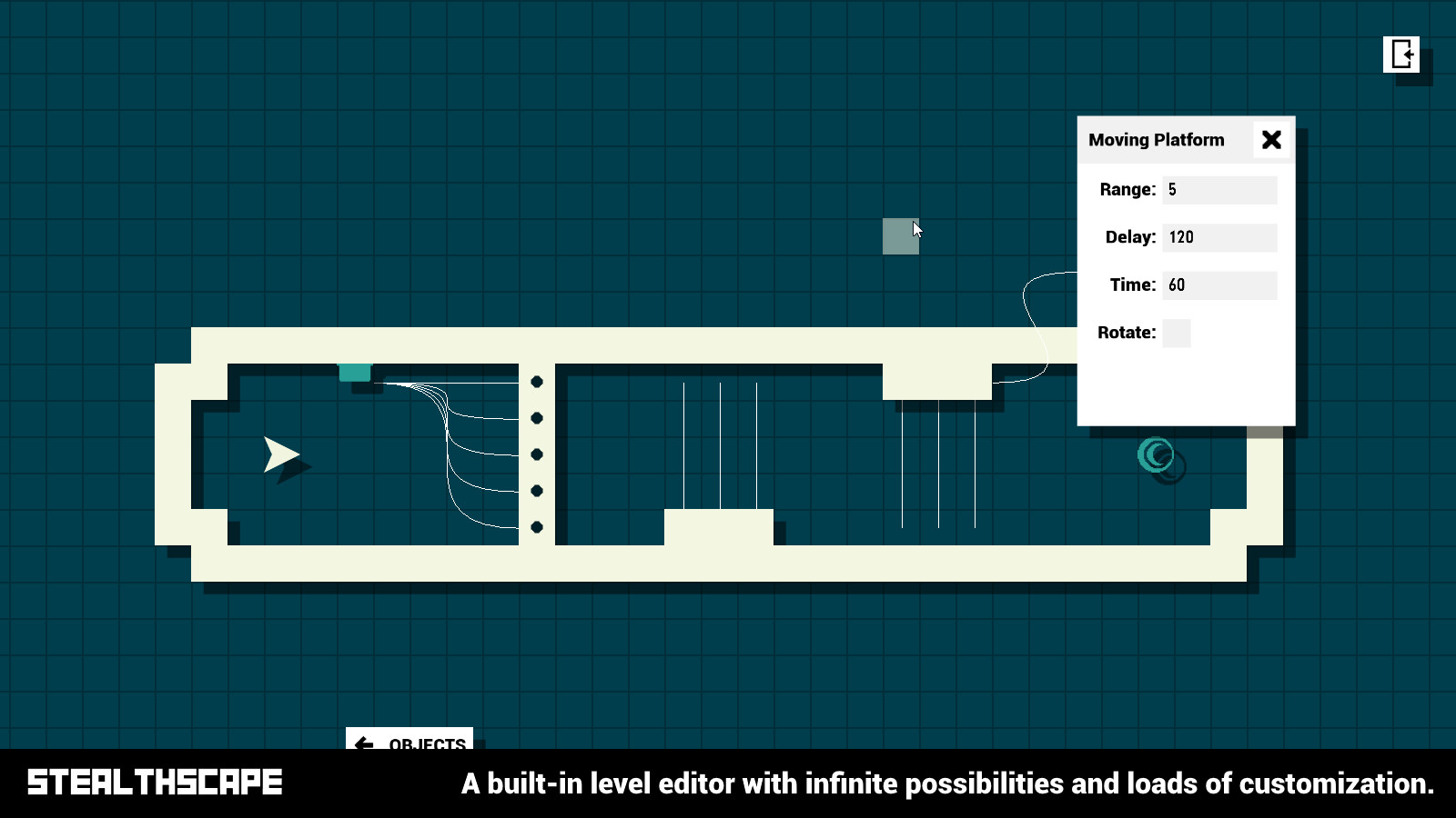 The built-in Stage Editor was developed to be user friendly and as customize-able as possible. As a result, it's easy to create, concept, and publish stages with ease. The Stage Editor is constantly evolving with more and more features allowing for even more creative possibilities, and with the wide selection of Objects, Traps, Enemies, and Logic, you can bring any idea to life!