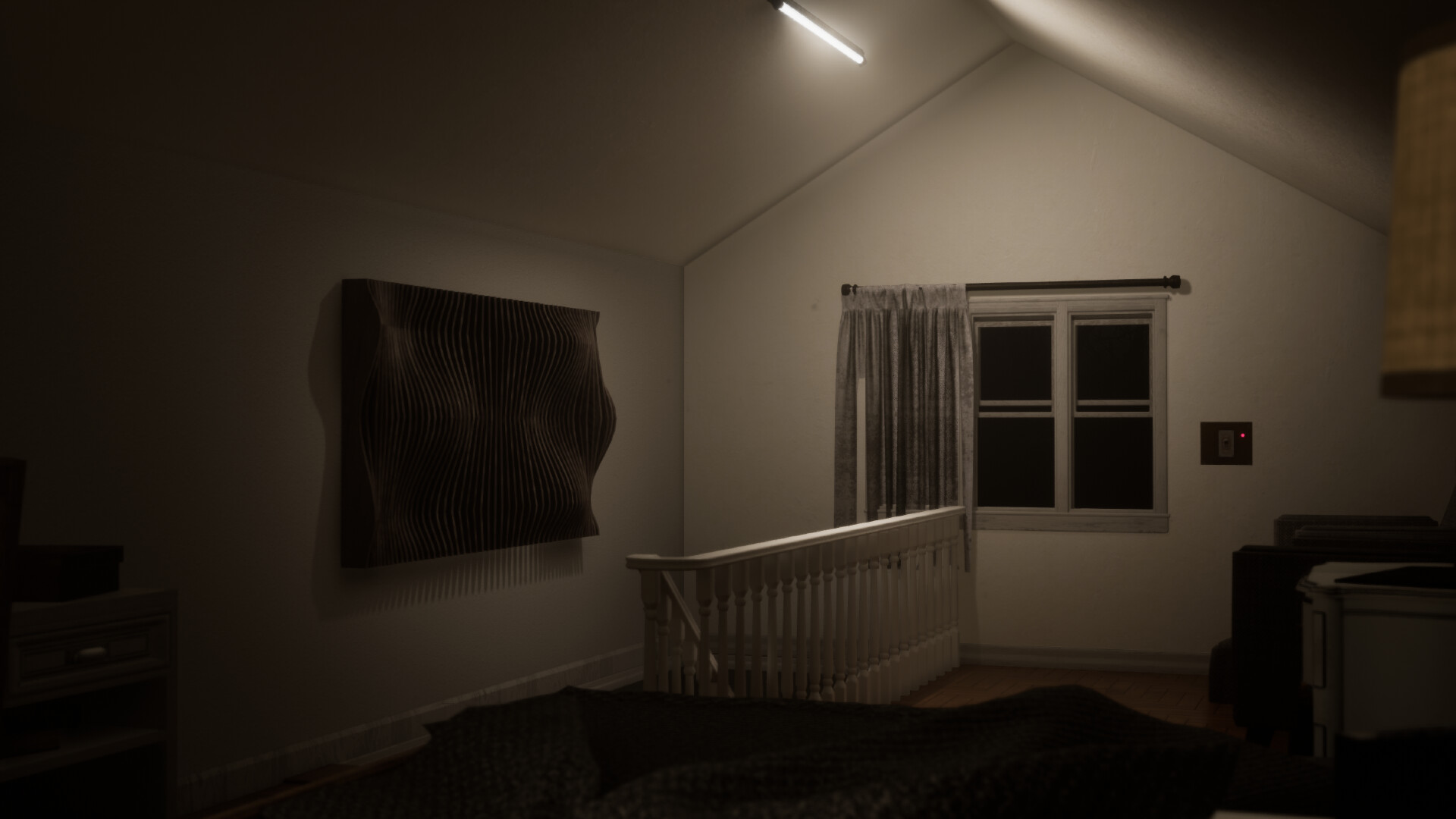 Survivors will be have to work together to defend their home from the Stranger. The survivors will be given 2 locks to share as a team at the start of the game that can be placed on the windows and picked up along with one permalock that can't be picked up. You must use your equipment which includes spotlights, security system, locks and more to find where the Stranger is attacking and lock that window before its to late. If you successfully lock the window in time don't rest for long because the Stranger will come again. You must survive until 6am.