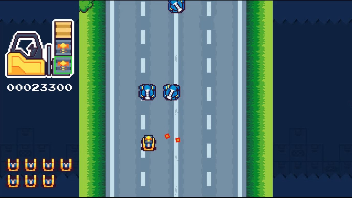 mostly not in space! You drive a forklift that can shoot the boxes it carries. Defeat enemies and bosses using your many box types in this colorful pixel art shoot'em up with light puzzle elements!