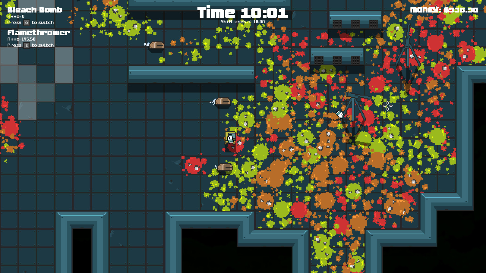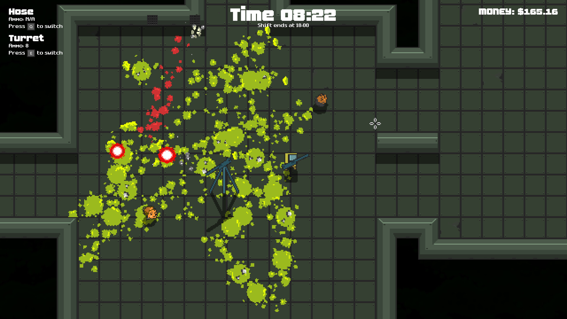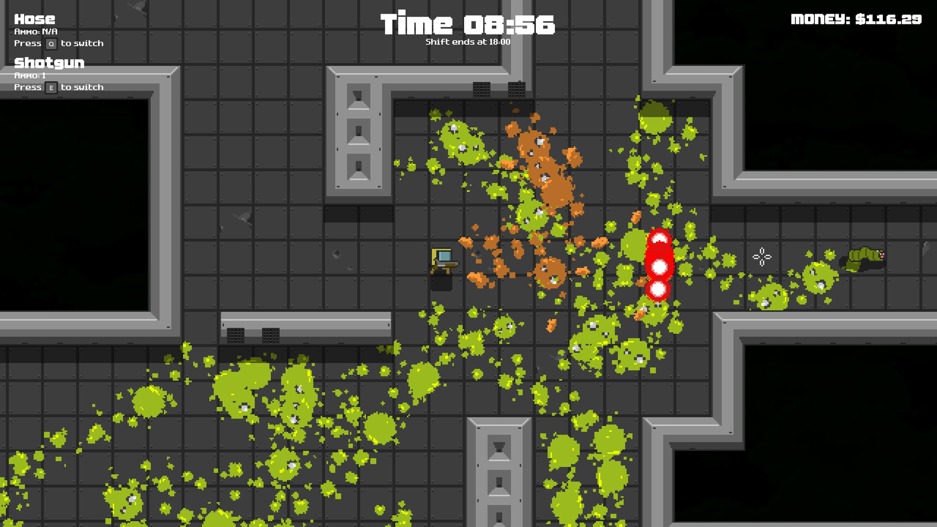 Earn money destroying contaminators, cleaning up their messes, and getting a large cleanup bonus if you clean everything before shift end. Use this money to buy new equipment that will help you face the challenges of later levels