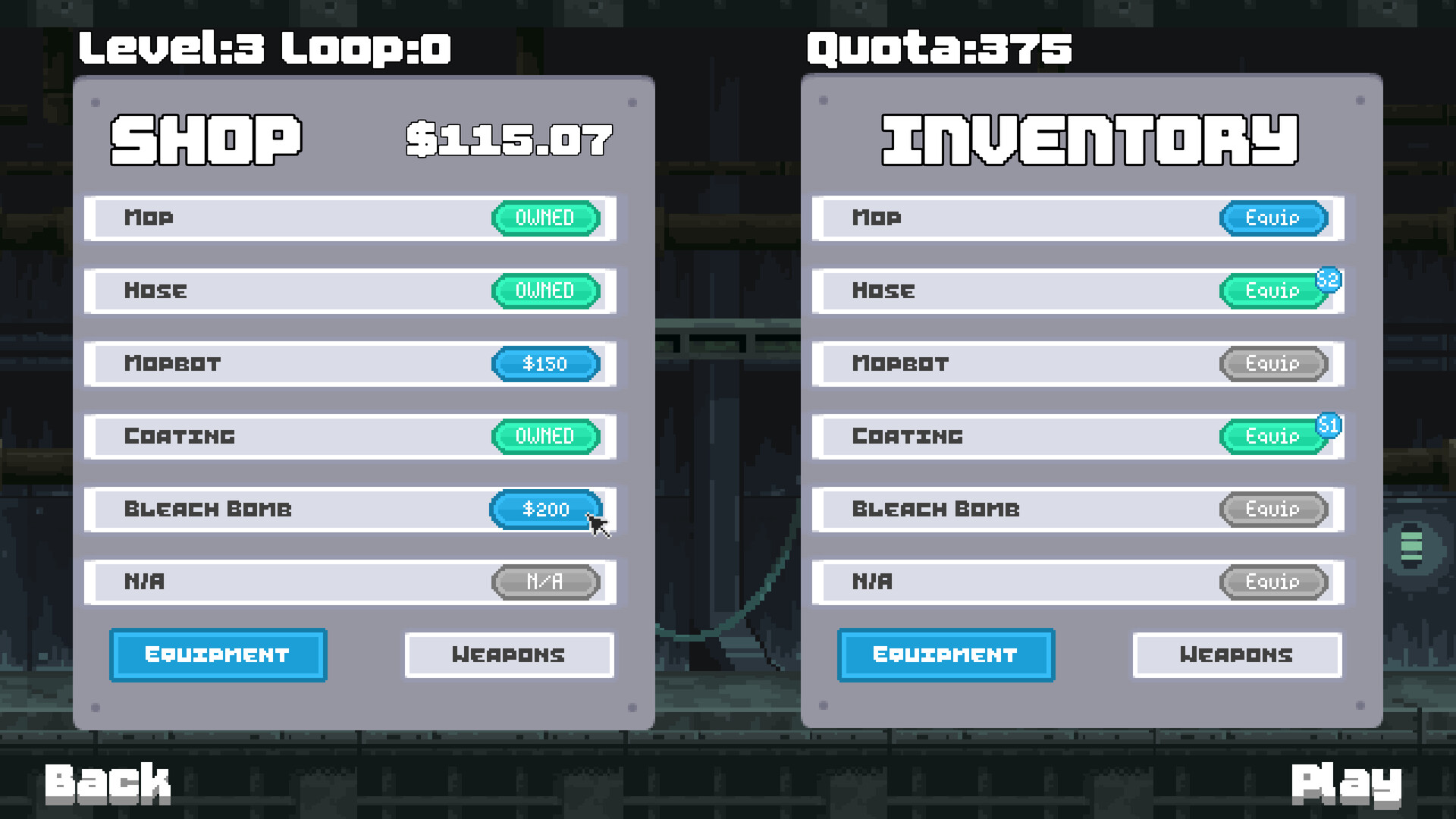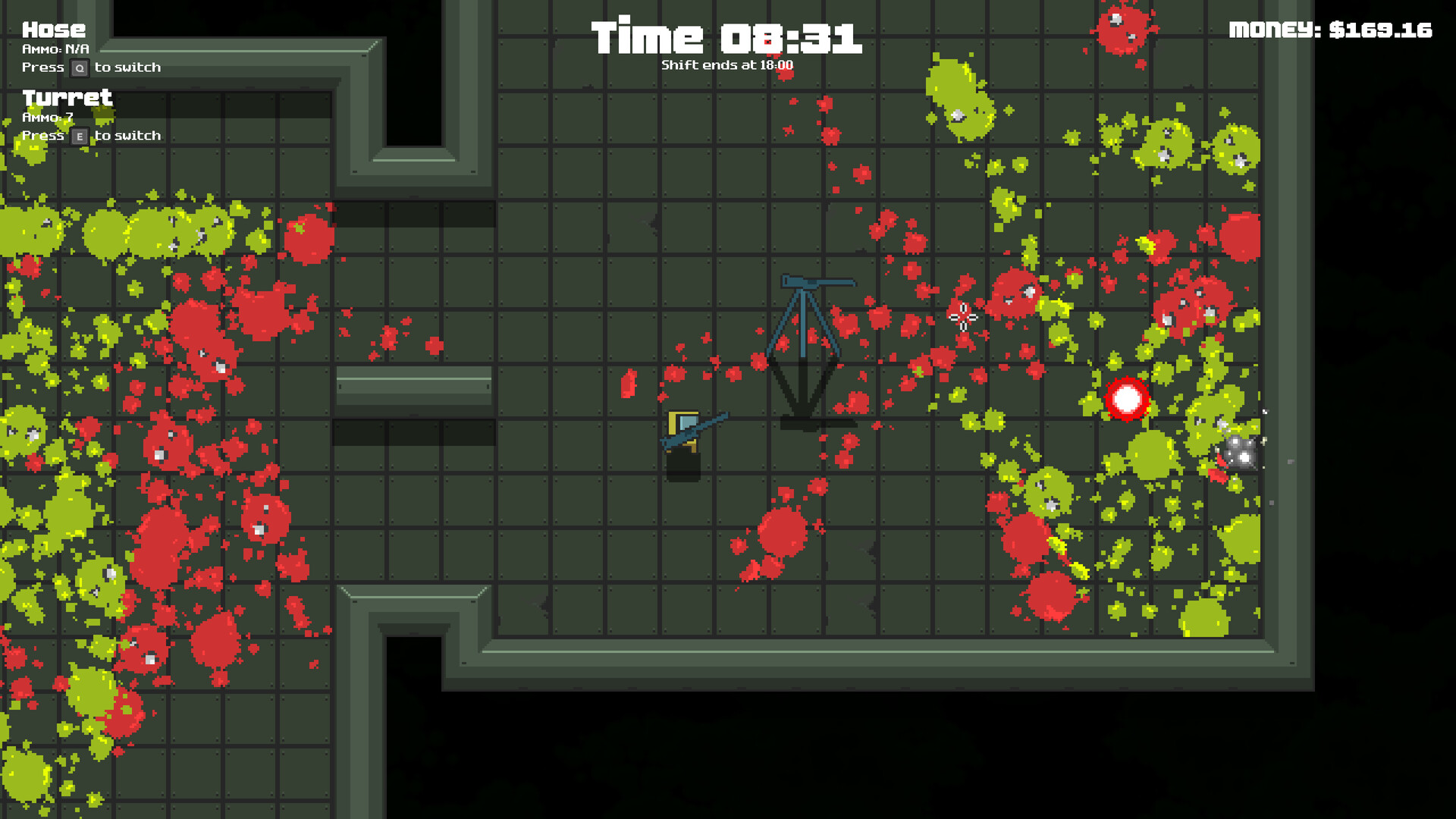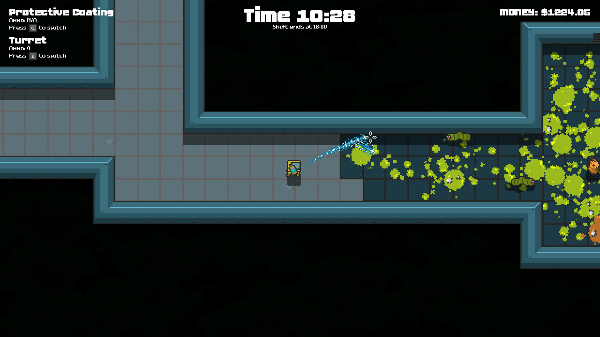 Earn money destroying contaminators, cleaning up their messes, and getting a large cleanup bonus if you clean everything before shift end. Use this money to buy new equipment that will help you face the challenges of later levels