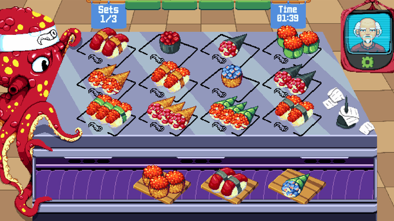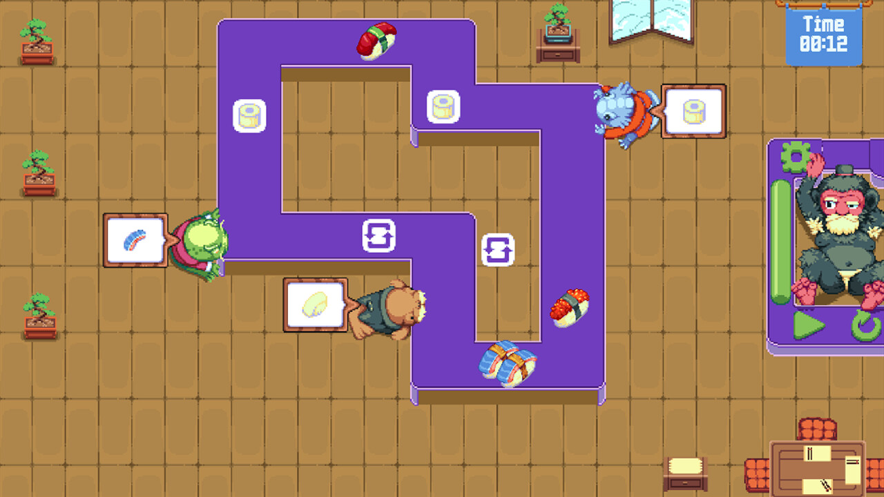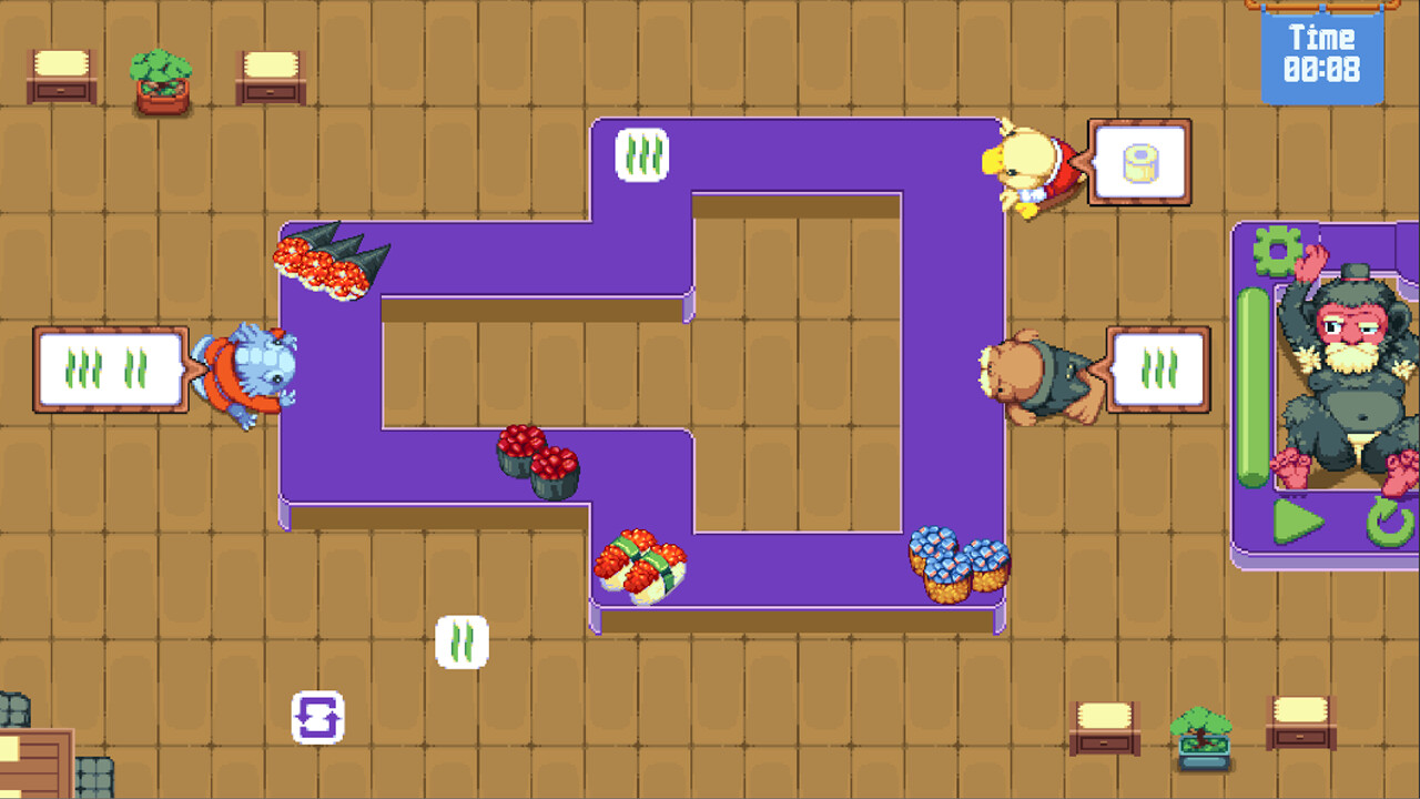 Running a restaurant is no easy task. The chef's way of cooking is a puzzle, he serves in sets of three and only if you manage to properly combine plates. Another challenge is the conveyor belt and anxious customers. Plates never reach them in time, can you work out a solution?