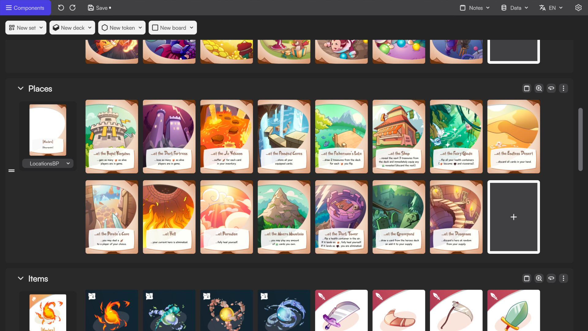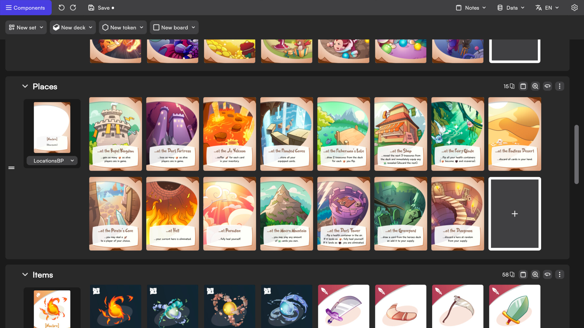 Tabletop Creator is everything you need to start designing, prototyping and playtesting your game idea. Create your different game components, customize them and export your game for getting a physical copy or for playing it online!